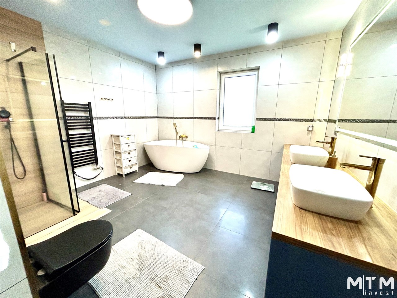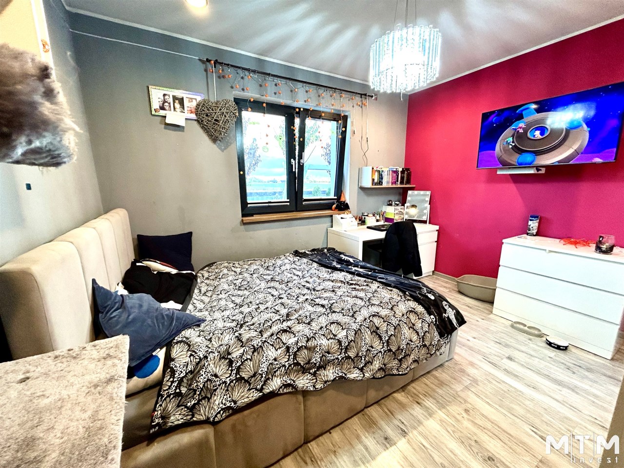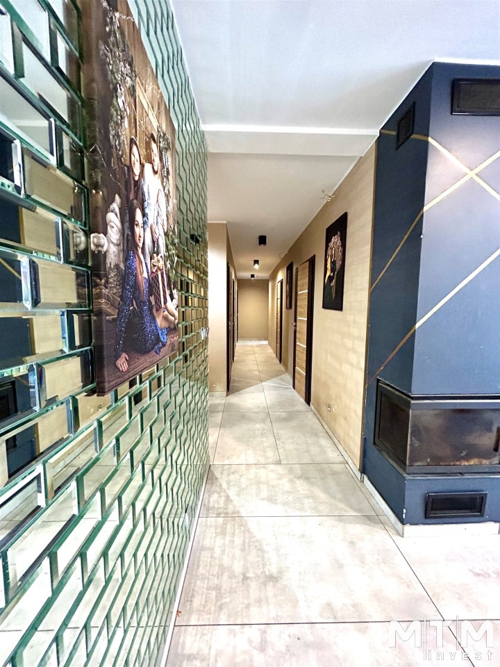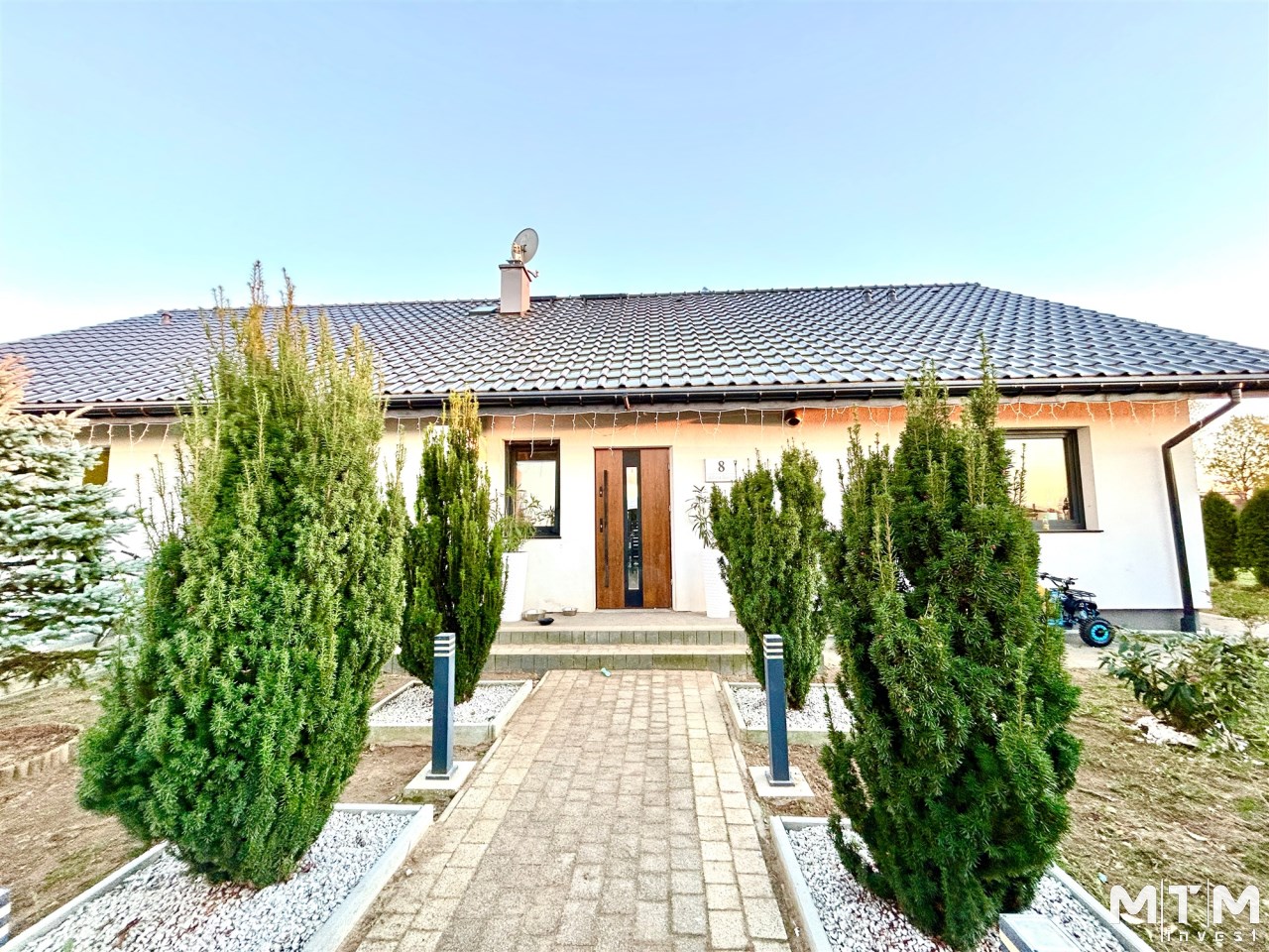 Na powierzchnię użytkową składa się przestronny salon połączony z aneksem kuchennym i wyjściem na taras i do ogrodu, spiżarnia, pomieszczenie gospodarcze, sypiania główna z garderobą dodatkowo 3 pokoje z czego jeden z prywatną łazienką i sauną, oraz przestronna łazienka z wanną i natryskiem.