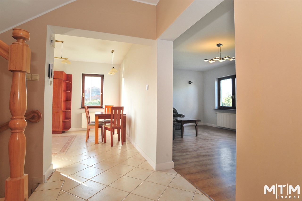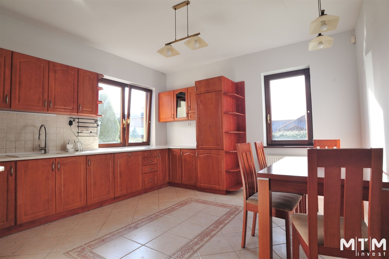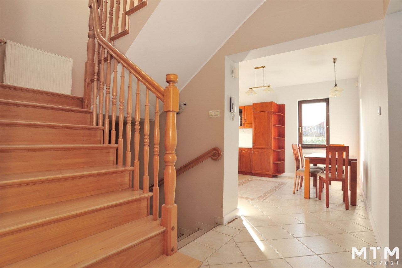 Dom ma powierzchnię całkowitą 205,23 m2, powierzchnię użytkową 135,80 m2, posiada drewniane mahoniowe okna, drzwi antywłamaniowe a na piętro prowadzą dębowe schody.