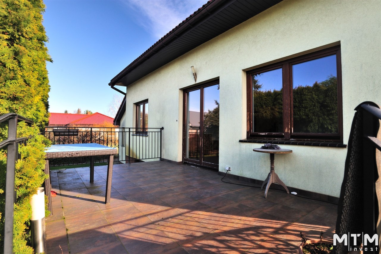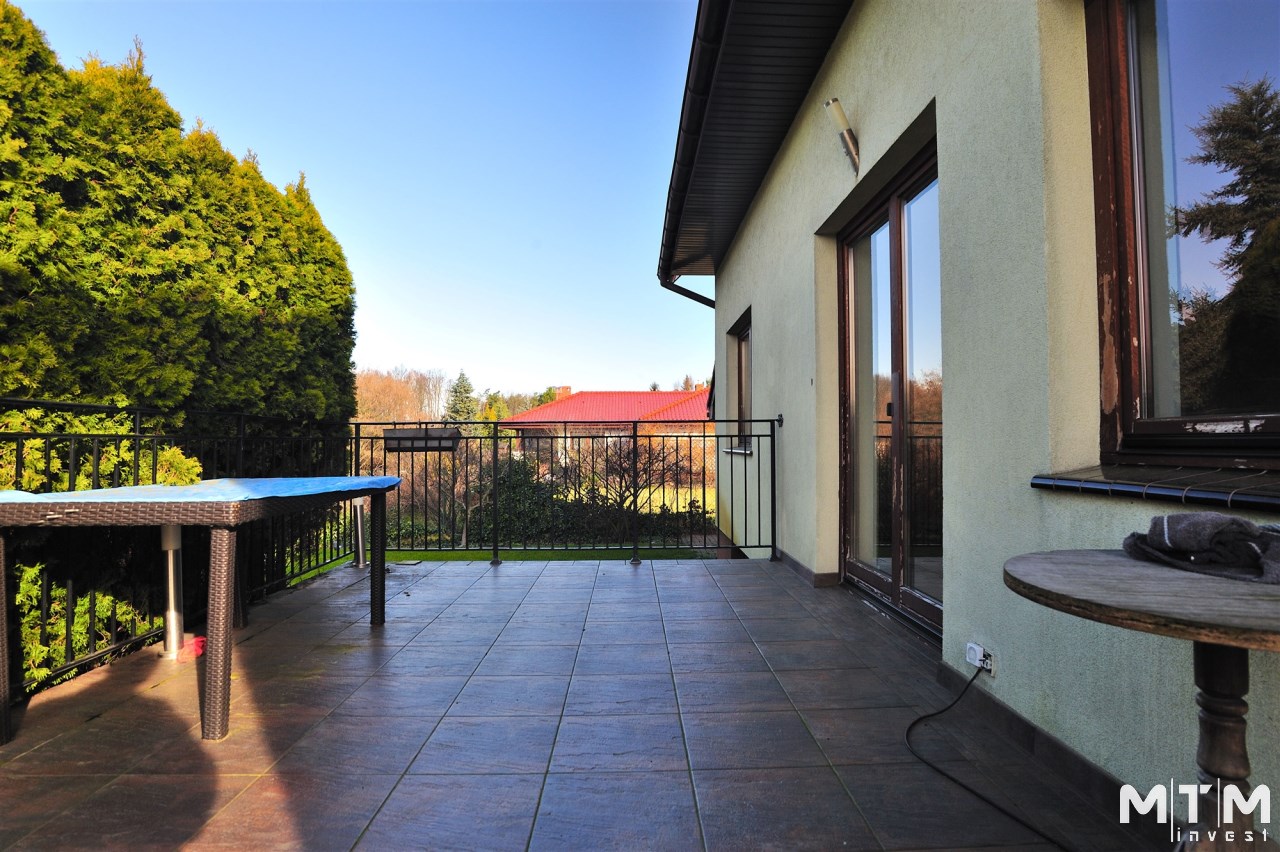 Dom jest bardzo dobrze położony geograficznie, taras i ogród są od strony południowo-zachodniej. Całość domu otaczają wieloletnie wysokie nasadzenia, które gwarantują intymność mieszkańców.