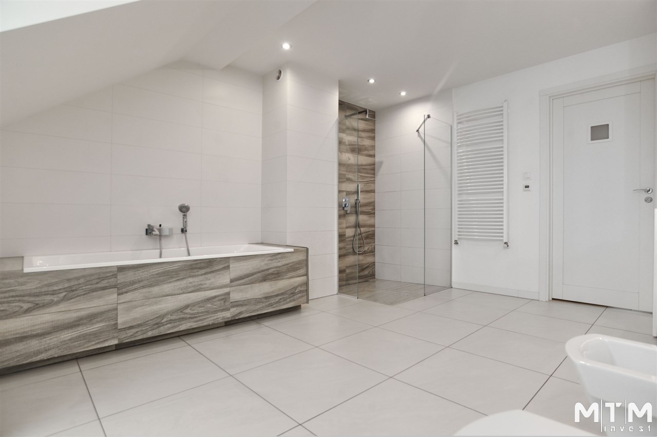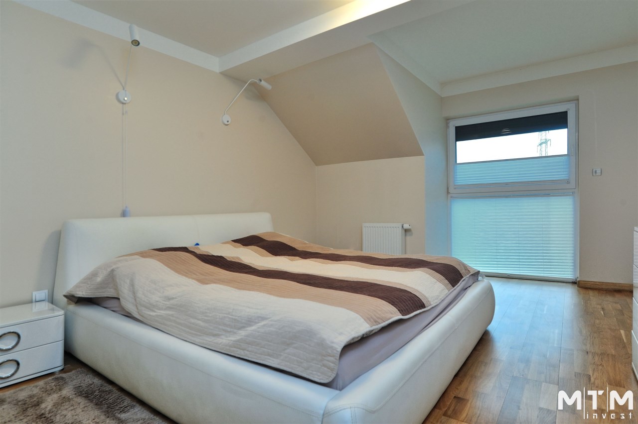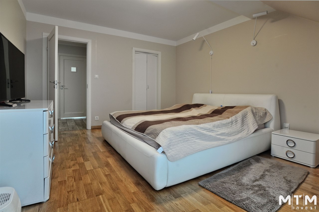 Piętro: trzy komfortowe sypialnie (jedna z garderobą), elegancka łazienka z wanną, prysznicem, bidetem i podwójną umywalką, wyjście na balkon z łazienki i sypialni.