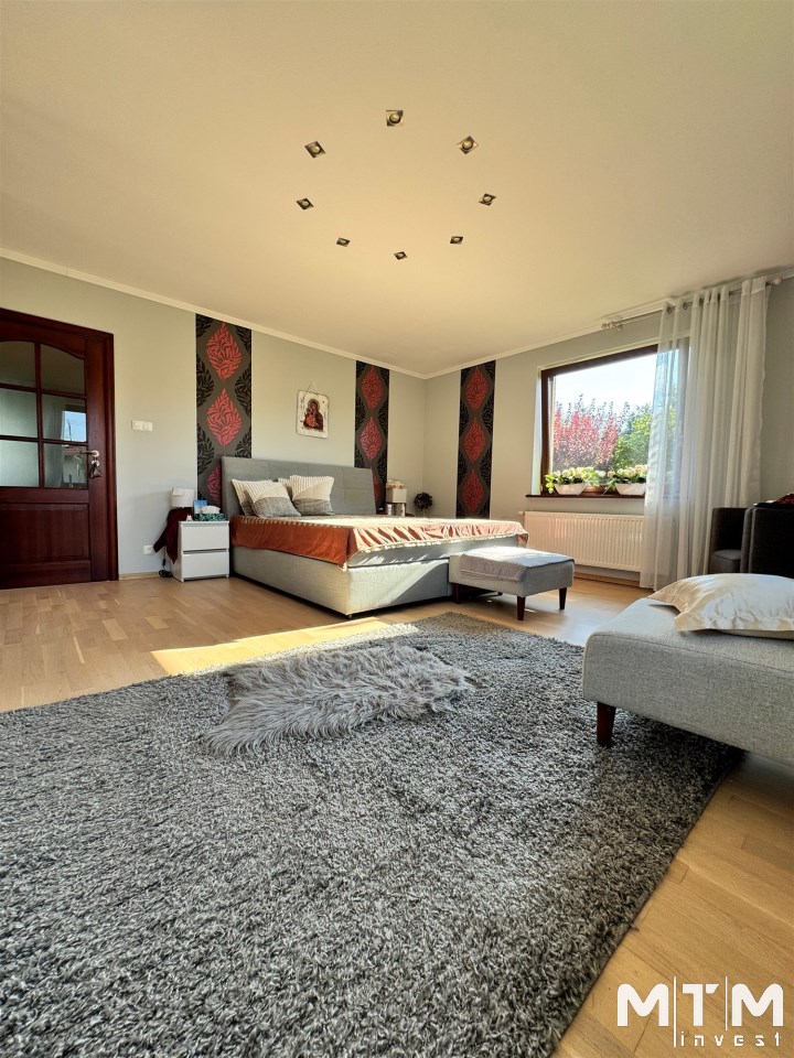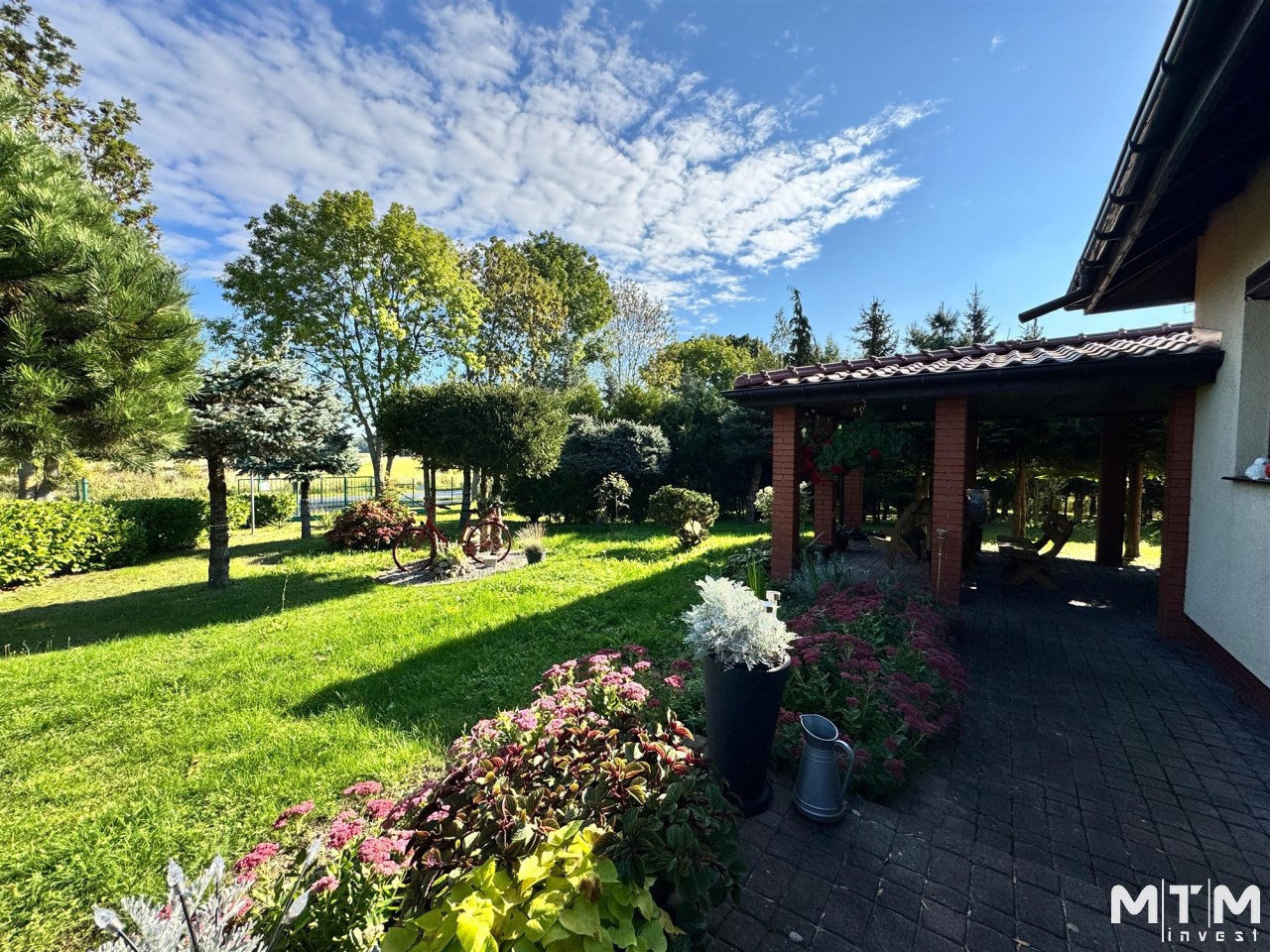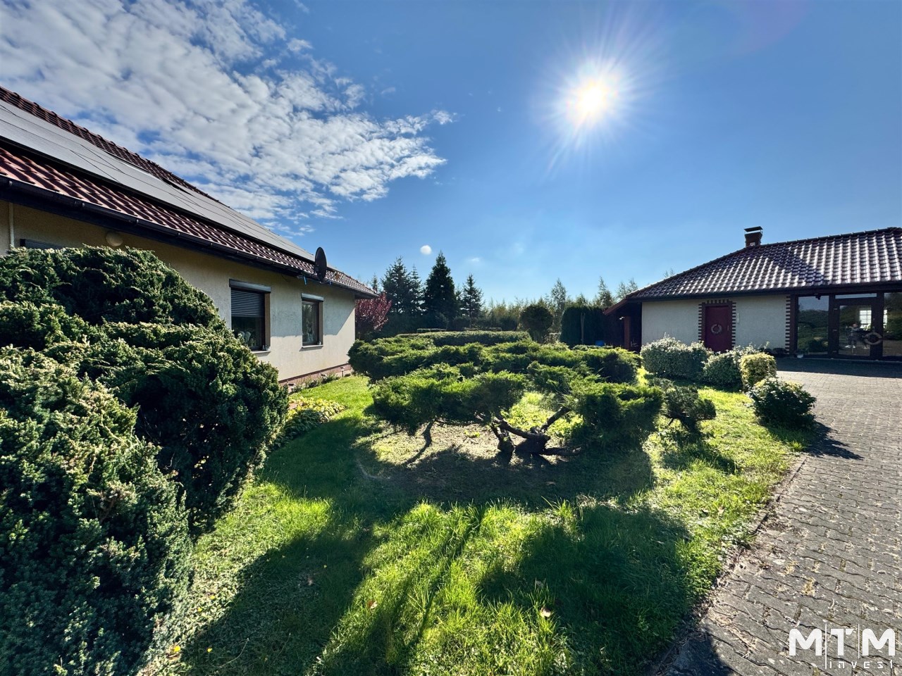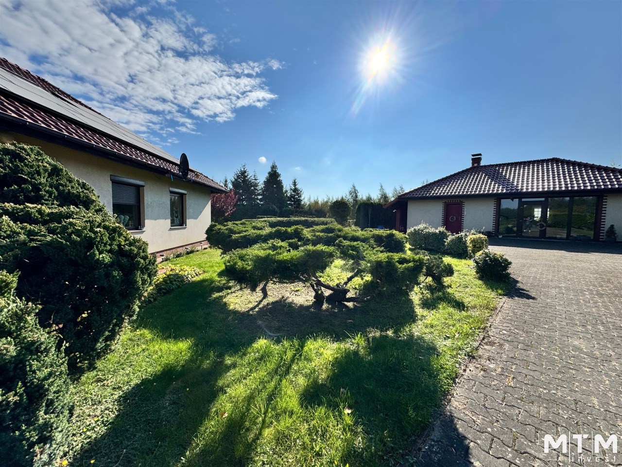 Budynek dodatkowy na działce (garażowo-gospodarczy) budowany jako garaż, obecnie zaadoptowany na mieszkalny (można przywrócić pierwotną funkcję zdejmując okna bo brama elektryczna jest zamontowana). Znajdziemy tu także przestrzeń na antresoli jako cześć sypialna. Dodatkowo jest łazienka i kuchnia oraz piwnica w której jest umieszczony cały system ogrzewania i filtry.