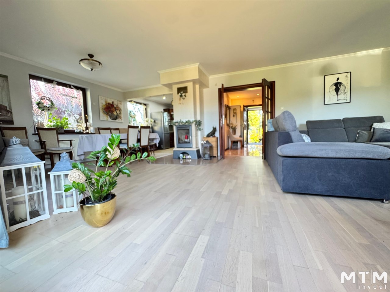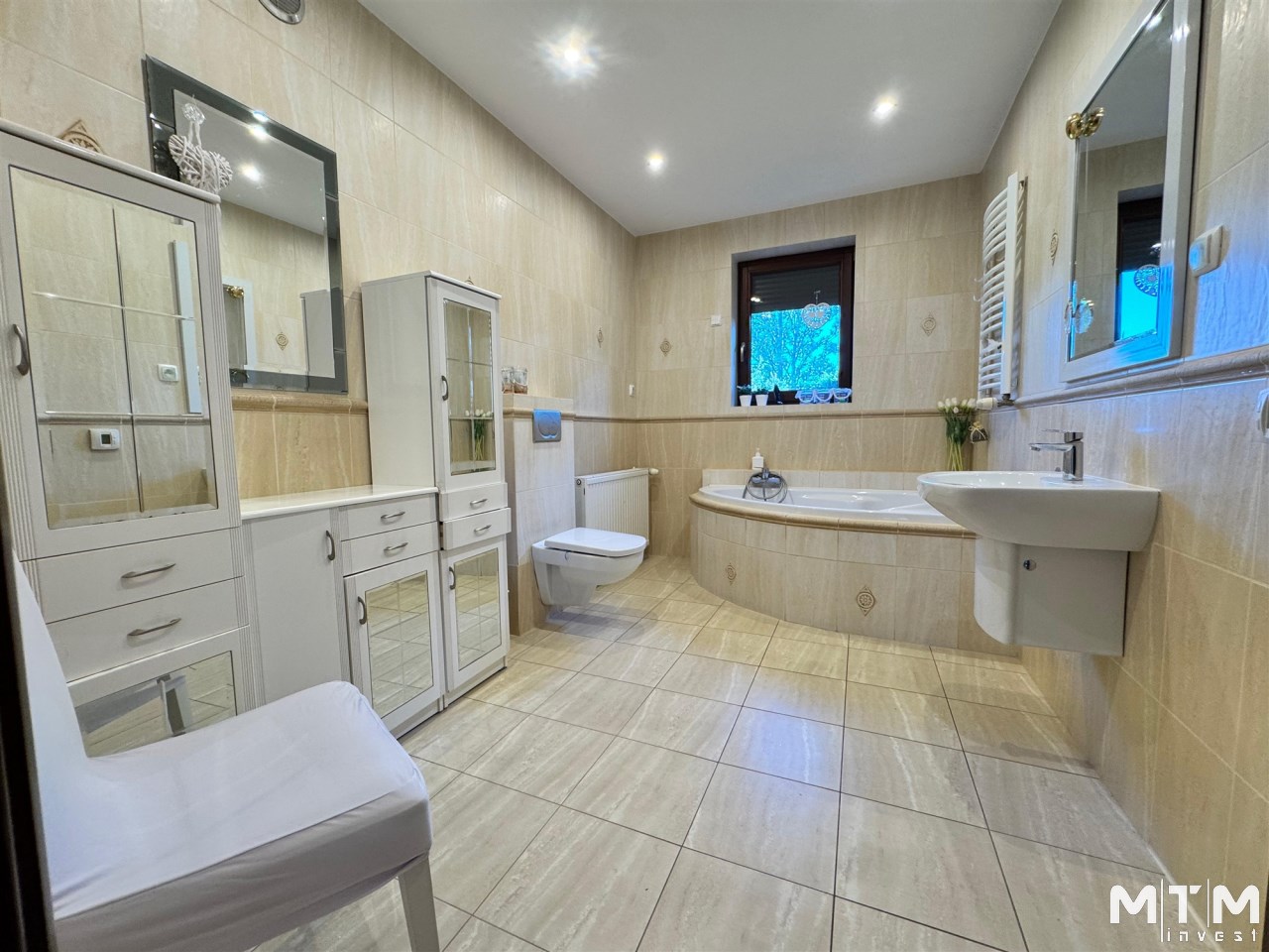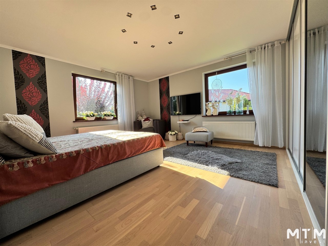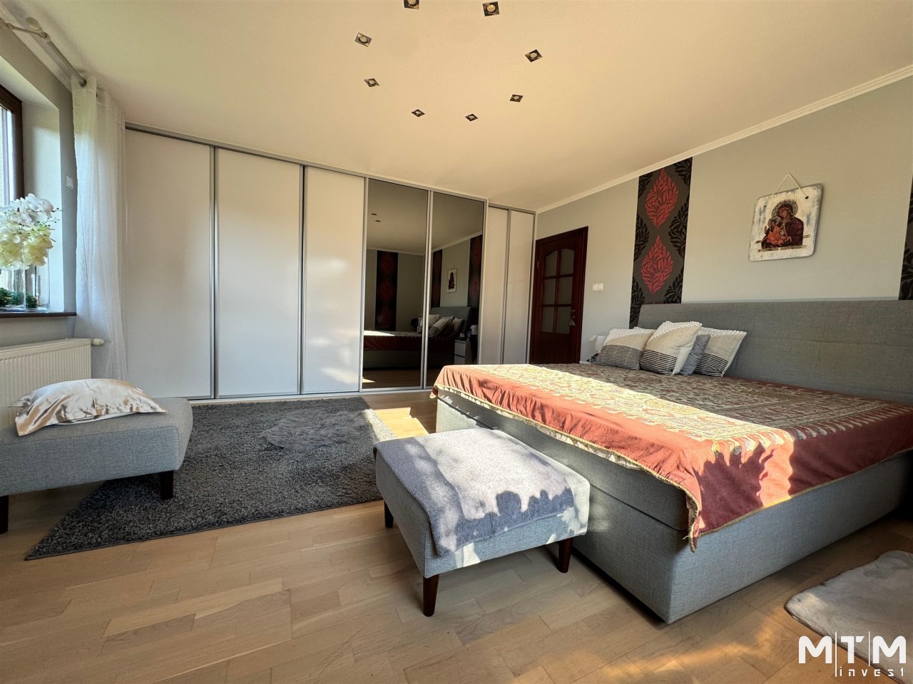 Budynek dodatkowy na działce (garażowo-gospodarczy) budowany jako garaż, obecnie zaadoptowany na mieszkalny (można przywrócić pierwotną funkcję zdejmując okna bo brama elektryczna jest zamontowana). Znajdziemy tu także przestrzeń na antresoli jako cześć sypialna. Dodatkowo jest łazienka i kuchnia oraz piwnica w której jest umieszczony cały system ogrzewania i filtry.