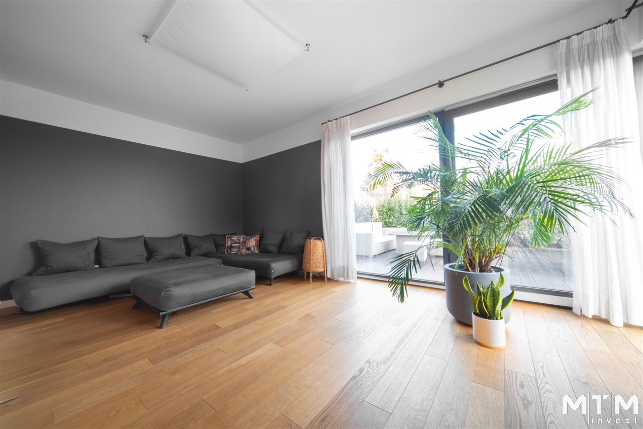 przestronny salon z wyjściem na taras,