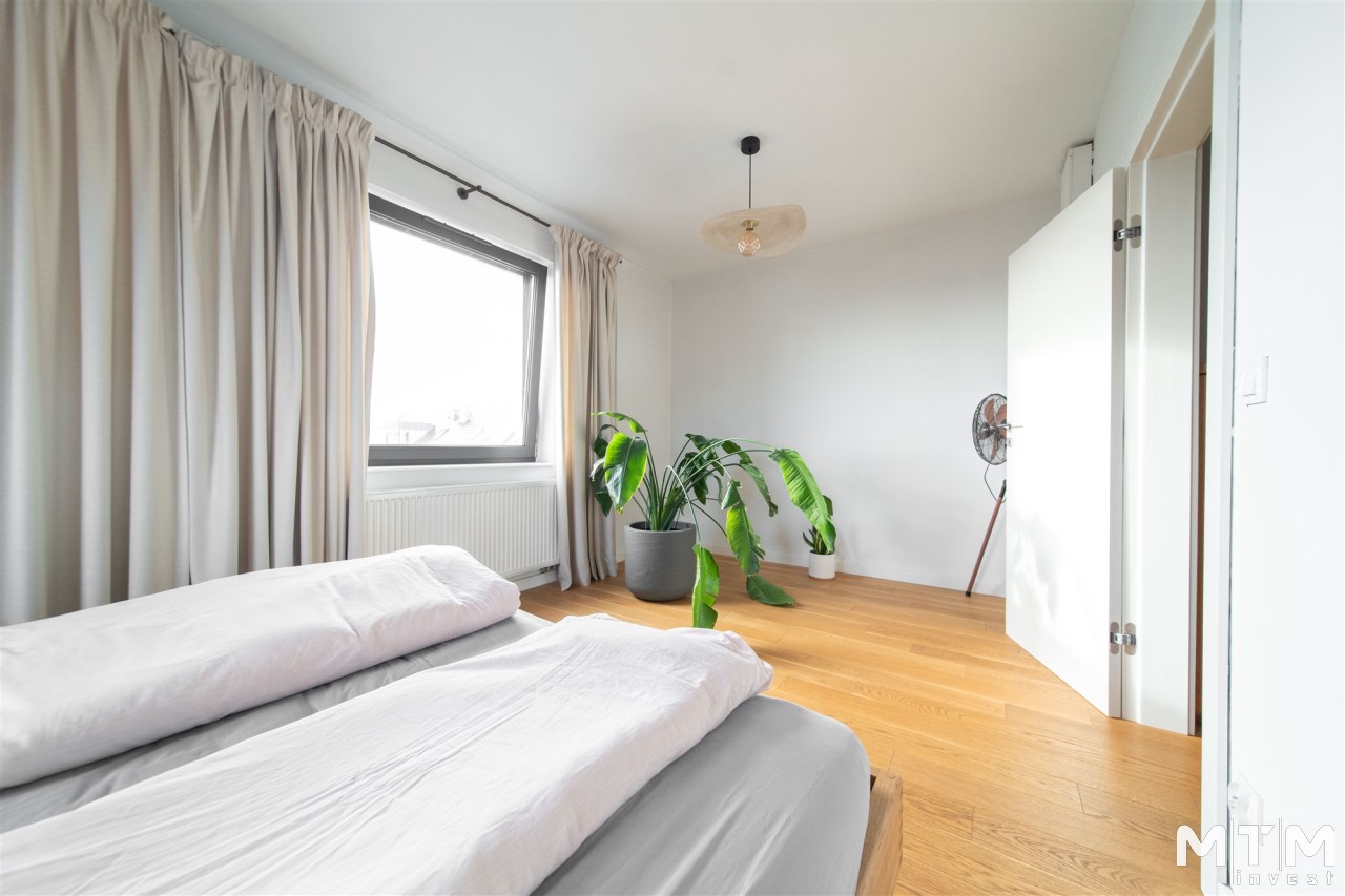 główna sypialnia z widokiem na ogród.