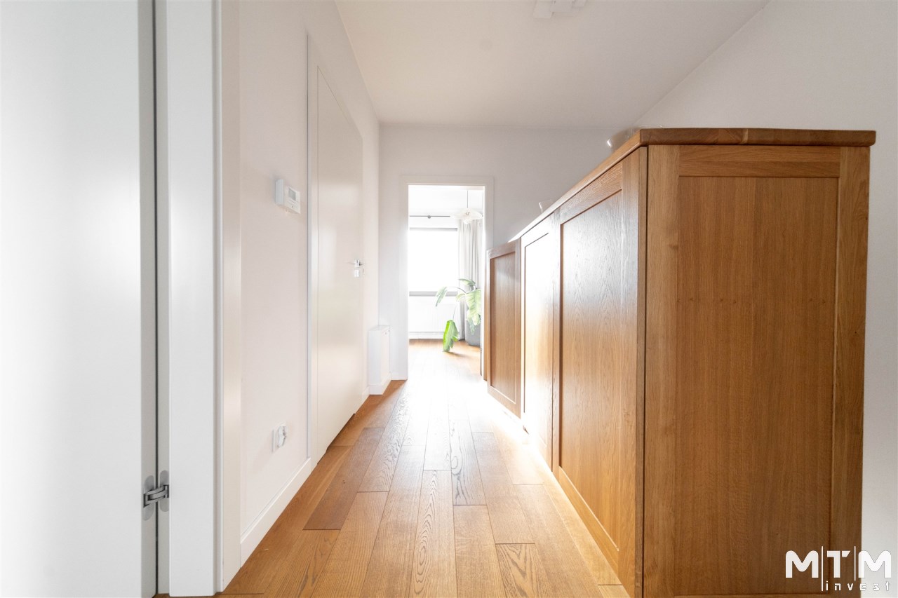 podłogi z drewna dębowego, drewniane drzwi oraz zabudowy stolarskie.