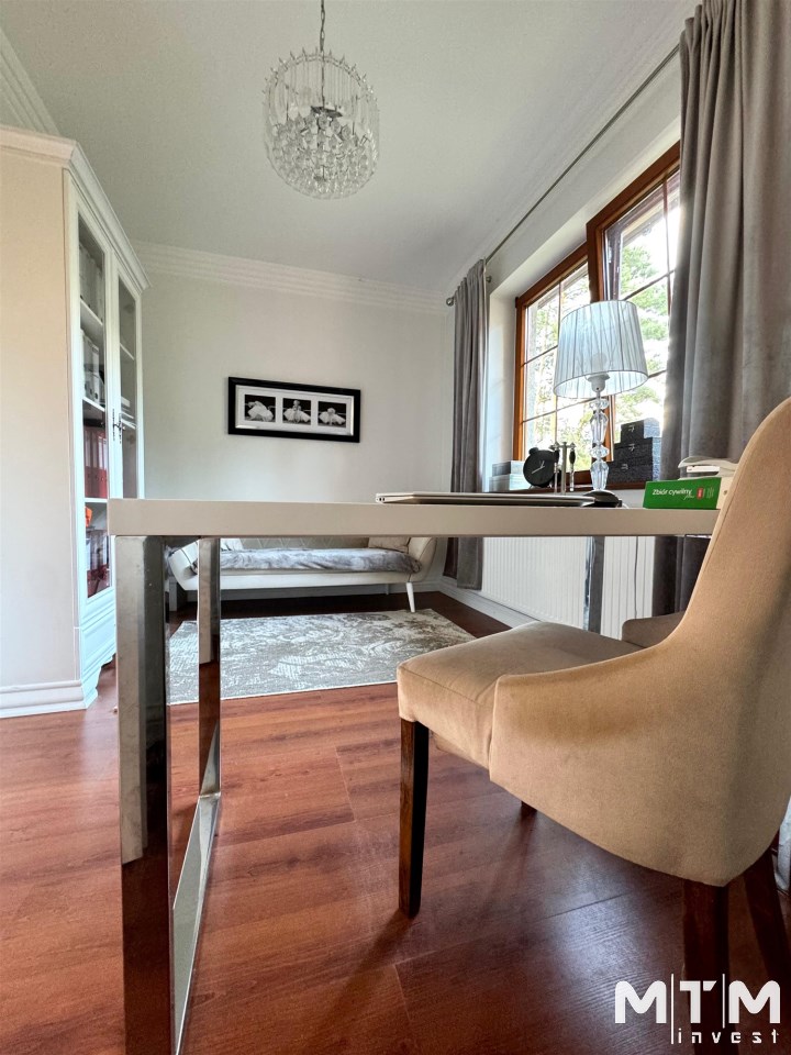 Dom został wybudowany w 1999 roku i posadowiony na przestronnej, pięknie zagospodarowanej działce o powierzchni 3325 m². Dach pokryto blachodachówką, a całość zaprojektowano z myślą o wygodnym, codziennym funkcjonowaniu całej rodziny.