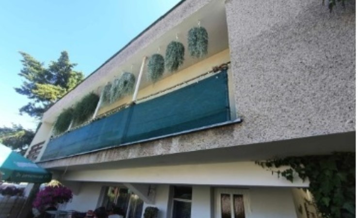 W skład części budynku obejmującego sprzedawane 50% udziału stanowi powierzchnia użytkowa 240m2 w tym 12 pokoi, 9 łazienek, kuchnia, korytarze. Stanowi to połowę parteru i całe I piętro. Druga połowa udziału stanowi połowę parteru oraz II piętro, które nie jest przedmiotem sprzedaży. Do oferty należy udział 50% w działce w tym połowa stanowisk postojowych. Wspólne pozostają przyłącza wody, prądu, kanalizacji, gazu. Rozliczenie mediów wszystkich w udziale 50% rachunków.