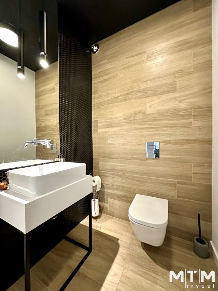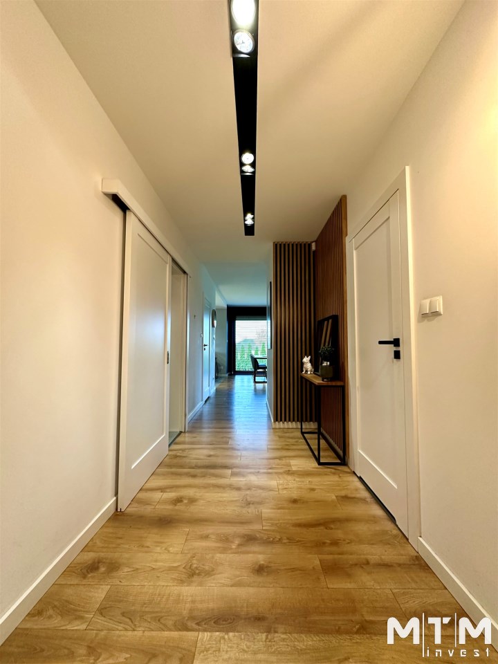 Dom wykończony w podwyższonym standardzie wykończenia. Indywidualne zabudowy na wymiar, baterie podtynkowe, markowej jakości sprzęty oraz armatura. Rozprowadzona instalacja centralnego odkurzacza.