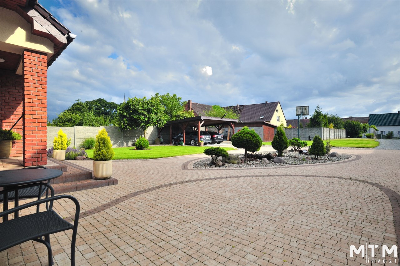 ???? Na posesji znajduje się dwustanowiskowa wiata, pomieszczenie gospodarcze 25 m², a wjazd zabezpiecza brama na pilota.
