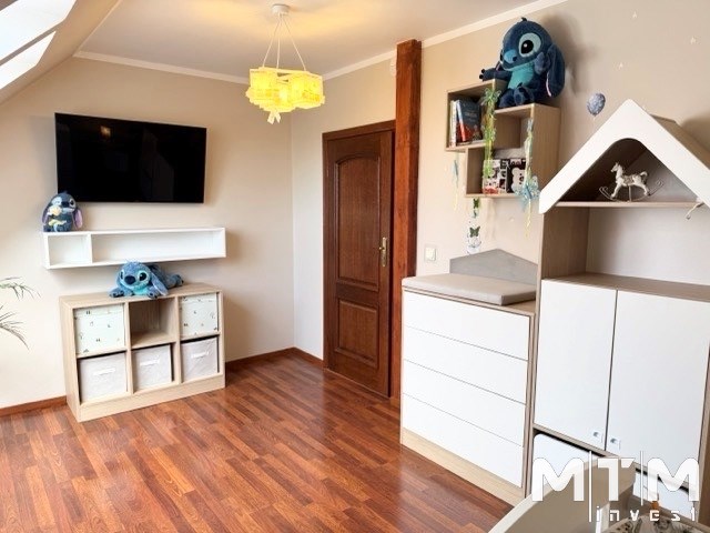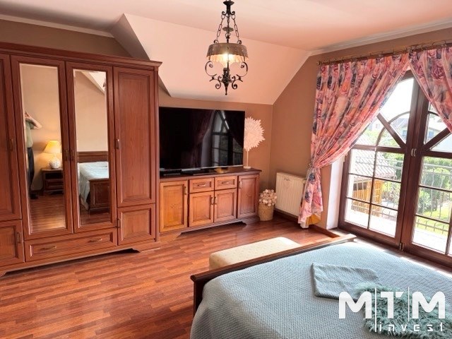 Poddasze: hall, 4 sypialnie (w tym główna z balkonem), łazienka.