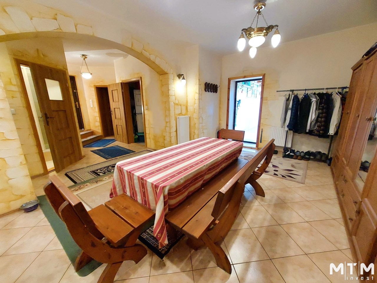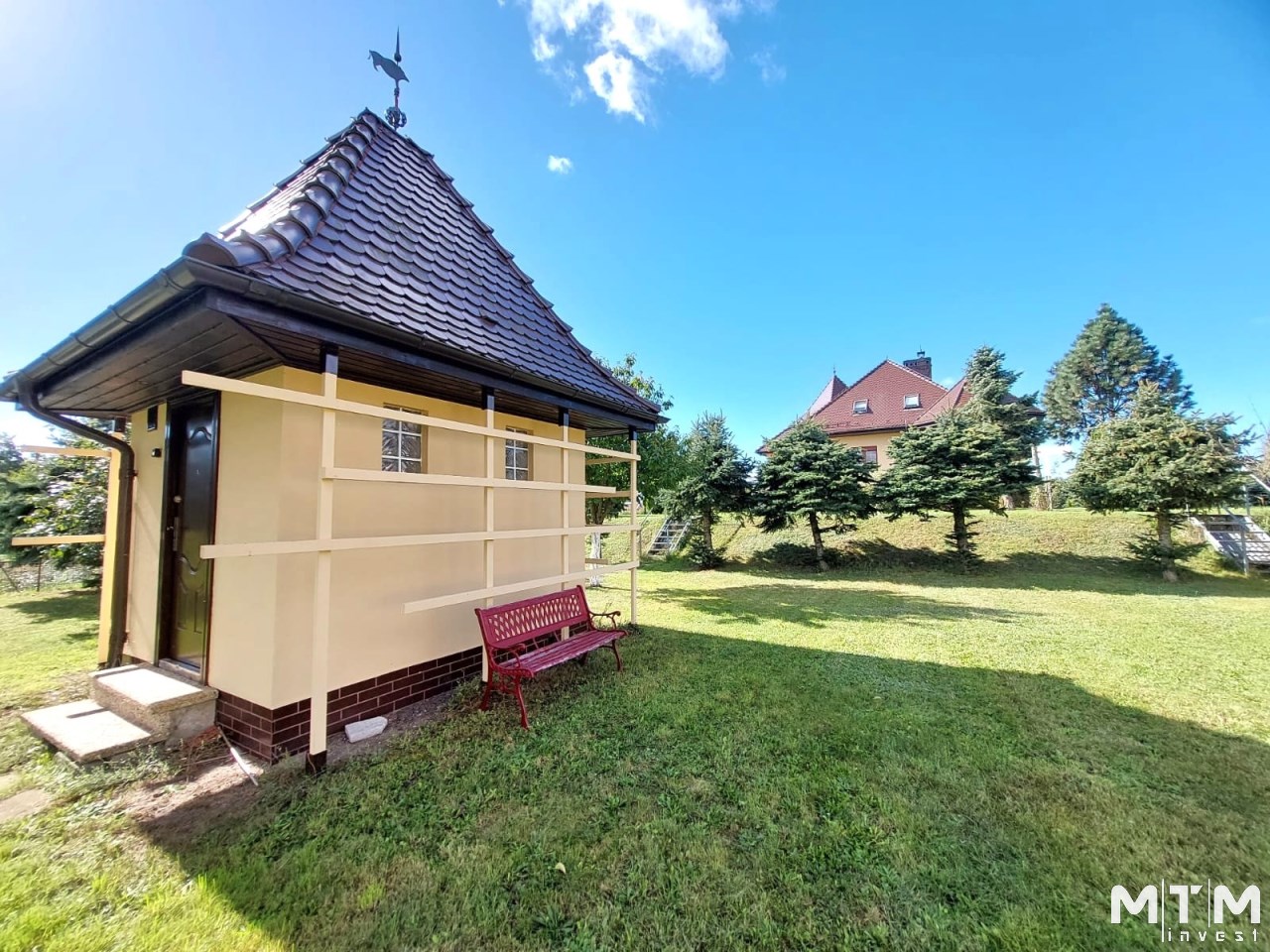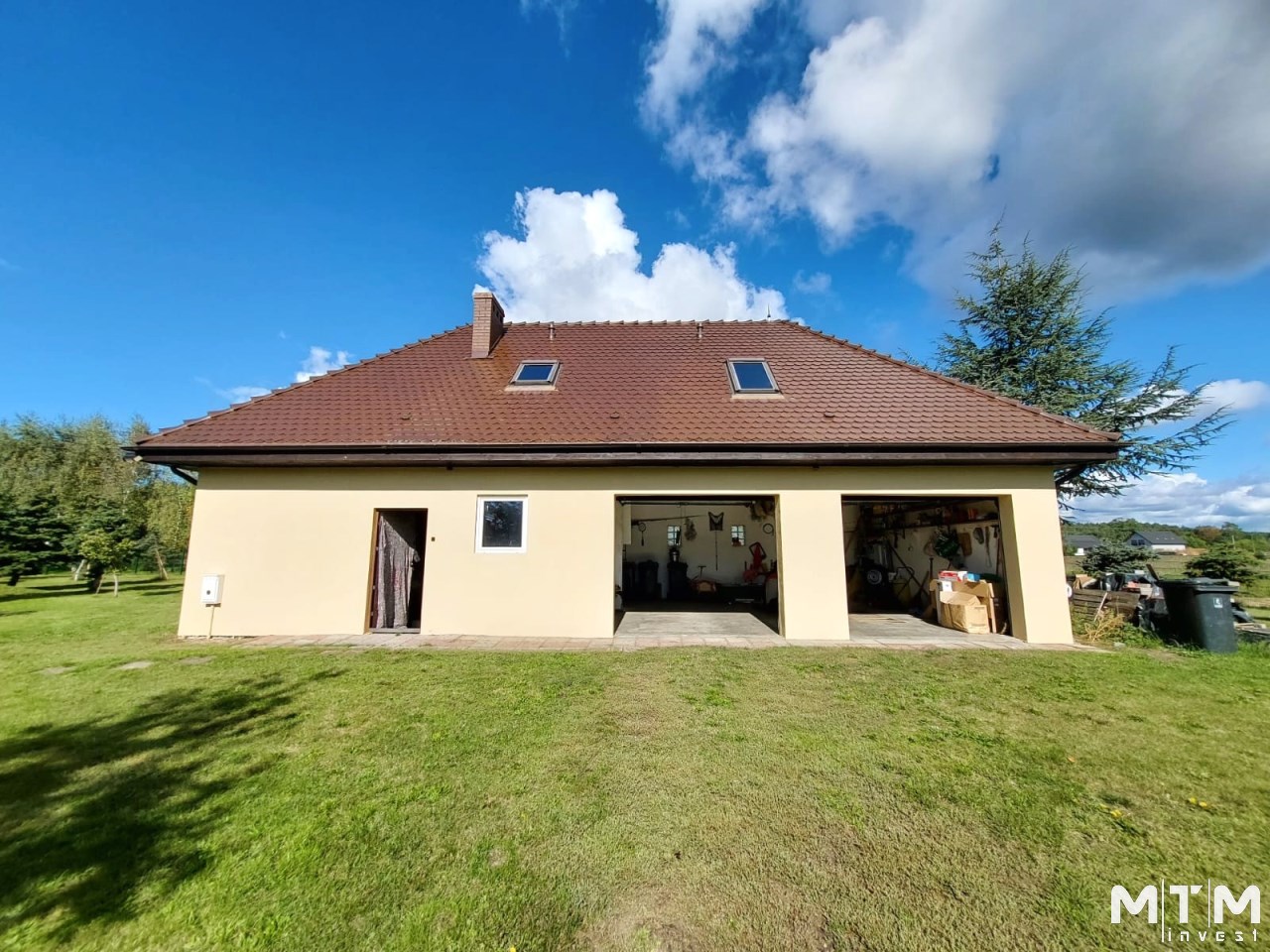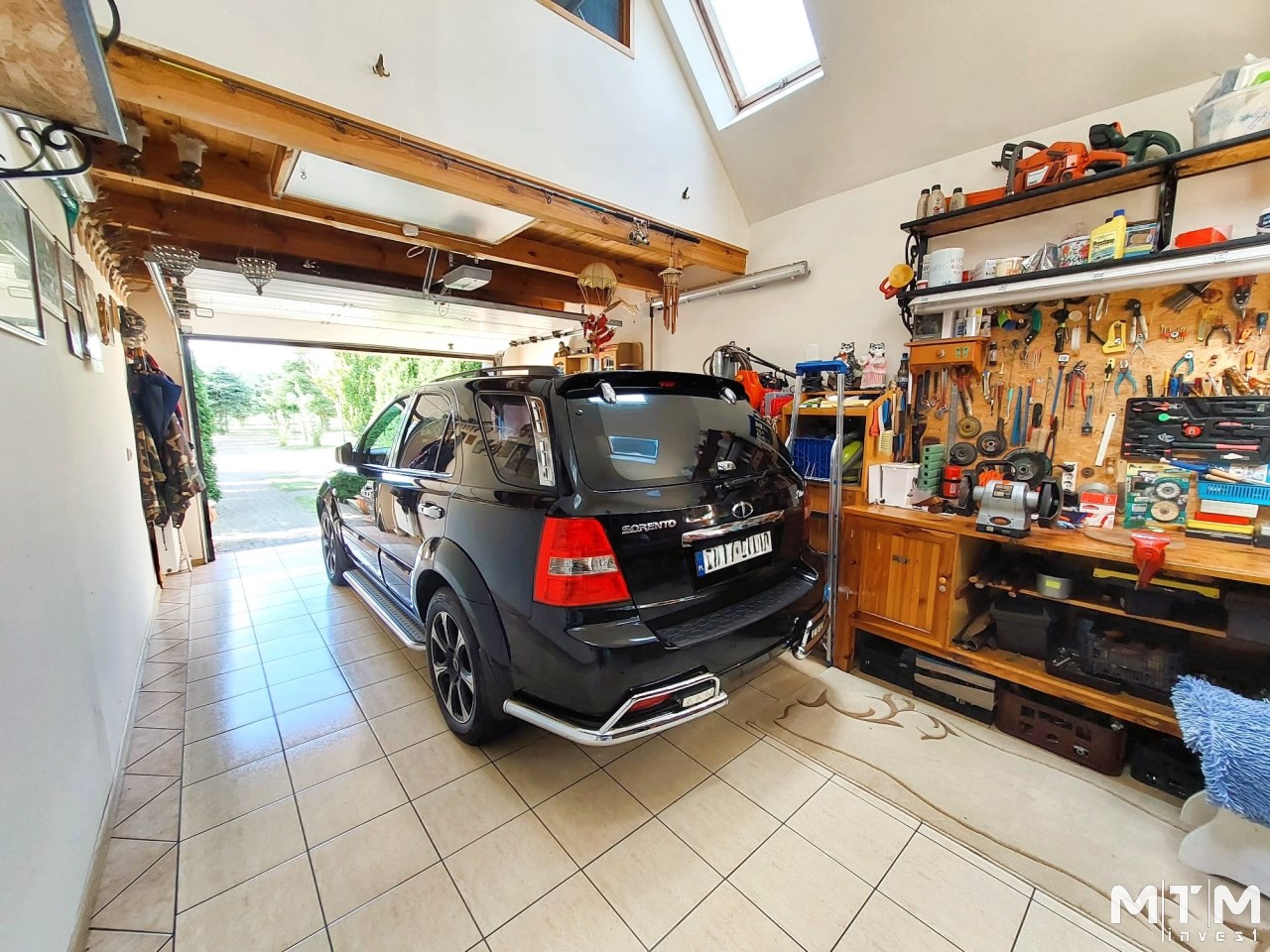 Dodatkowo na działce znajduje się budynek gospodarczo - garażowy o pow. 91,91 m2, wolnostojący, składający się z zabudowanej części garażowej i wiaty, przystosowany do umieszczenia dwóch samochodów, w części bocznej przestrzeń na przechowywanie sprzętu gospodarczego.