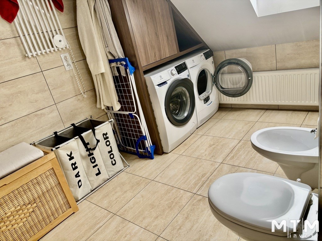 -Piętro: 3 sypialnie, garderoba, łazienka z wanną i prysznicem, pralnia.