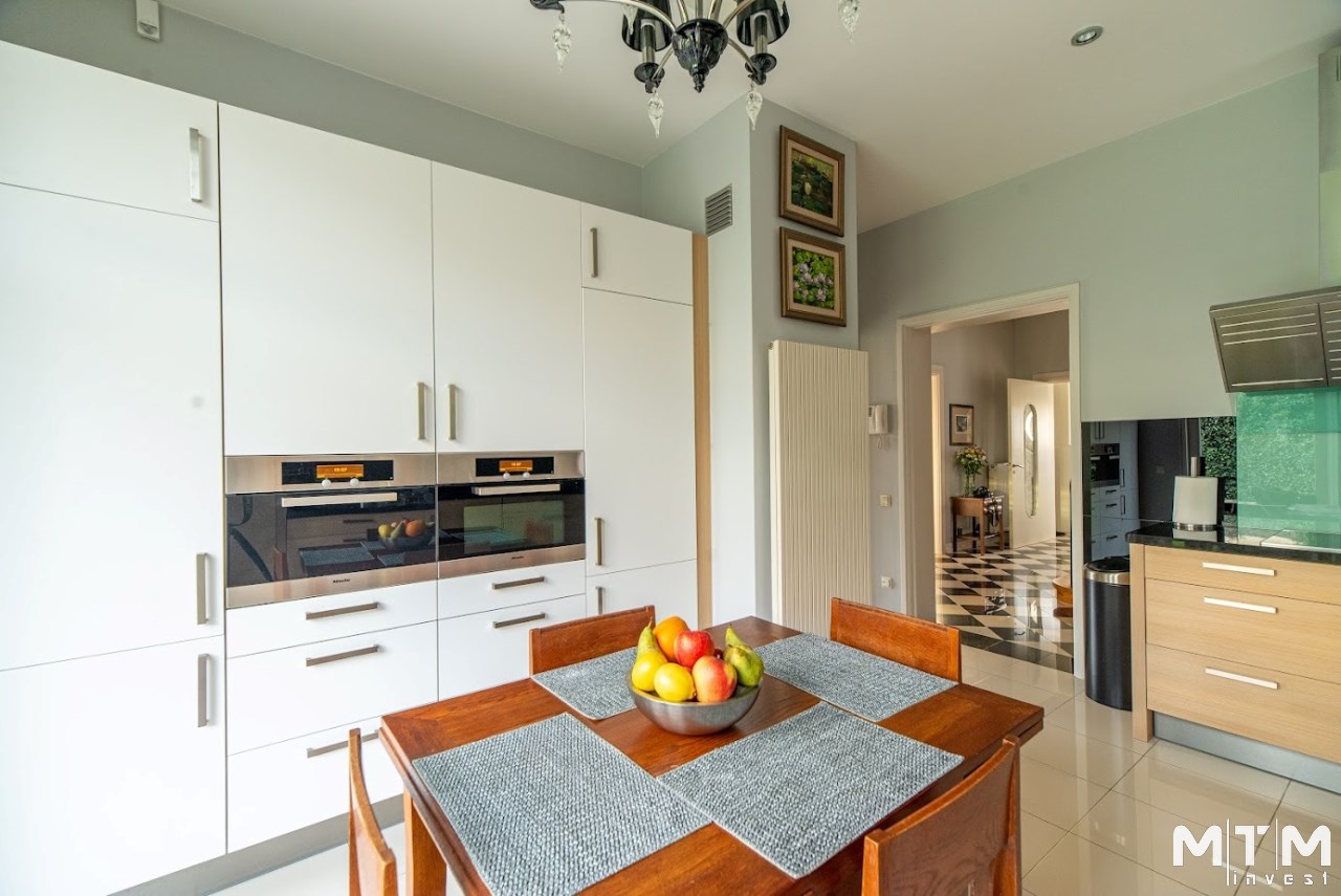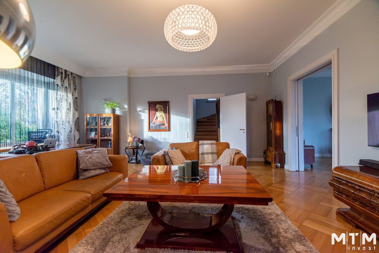Ta poniemiecka willa w stylu Art Deco o powierzchni użytkowej 297 m² (powierzchnia całkowita 447 m²) z garażem o powierzchni 35 m² została kompleksowo odrestaurowana z wykorzystaniem materiałów najwyższej jakości, z zachowaniem oryginalnego charakteru i ponadczasowej elegancji.