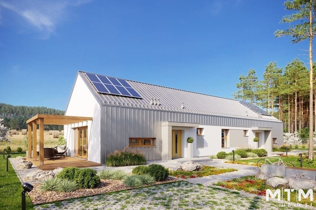 Ergonomiczny dom, zaprojektowany z myślą o praktycznych aspektach użytkowania. Bardzo słoneczny i przytulny, taras i ogród od strony południowo-wschodniej. Nowoczesny i ekologiczny budynek przeznaczony dla rodziny 3-4 osobowej, niepodpiwniczony, zewnętrzne dwa miejsca parkingowe.