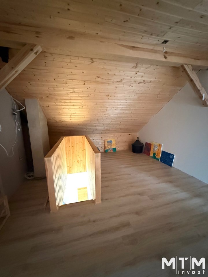 Poddasze zostało zaadaptowane przez właściciela na 5 niezależnych pokoi oraz hol, co daje duże możliwości aranżacyjne -idealne rozwiązanie dla większej rodziny, pod działalność lub wynajem pokoi.