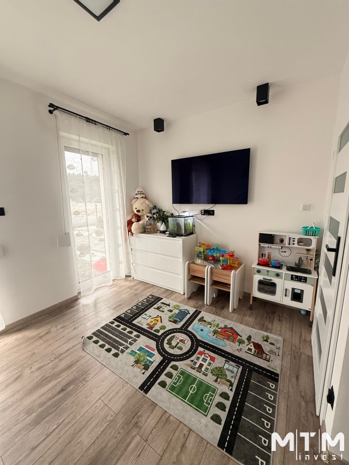 Dom został urządzony w spójnym, nowoczesnym stylu, z dbałością o detale i funkcjonalność. Idealna propozycja dla rodziny, pary lub osób szukających komfortowego domu bez schodów.