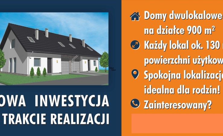 Na sprzedaż inwestycja składająca się z 4 bliźniaków (8 segmentów) w Wołczkowie o powierzchni 112m2.