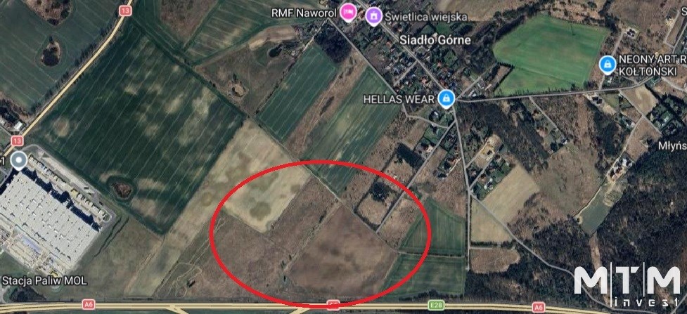 Działki rolne o powierzchniach 3,26ha i 1,8241ha takiej samej cenie za 1m2 w Siadle Górnym w sąsiedztwie węzła A6 i zachodniej obwodnicy Szczecina.