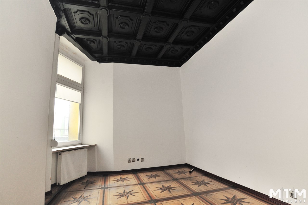 Na powierzchnię lokalu składają się trzy pokoje, w których zachowane zostały sztukaterie, stary piec, duże okna, jeden z pokoi znajdujący się od podwórka idealny jako pokój konferencyjny lub gabinet, dodatkowo małe archiwum, sekretariat z aneksem kuchennym i łazienka z kabiną prysznicową.
