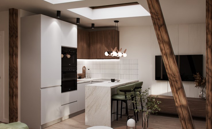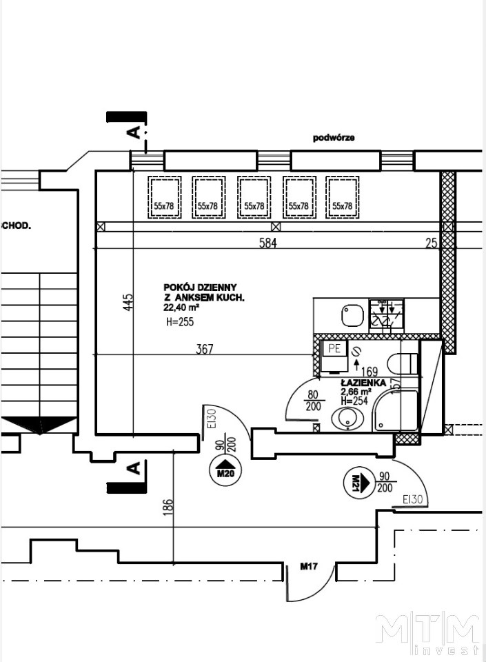 - pokój dzienny z aneksem kuchennym 22,40 m2,