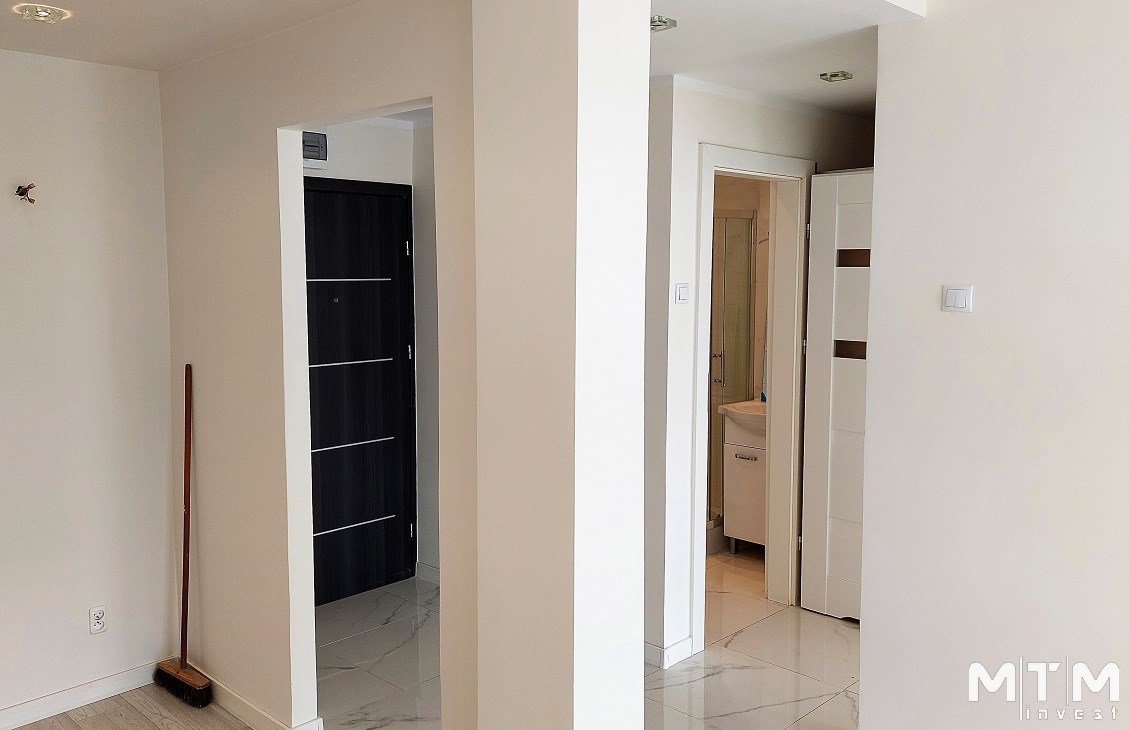 W pokojach i przedpokoju ściany gipsowane oraz malowane. Okna PCV z wystawą na południe. Podłogi w pokojach z paneli, w łazience i holu z terakoty. Na wyposażeniu pozostają w kuchni meble oraz płyta indukcyjna. Przyłącze do pralki w aneksie kuchennym.Łazienka w modnych płytkach, z kabiną prysznicową oraz kompaktem WC w zabudowie.