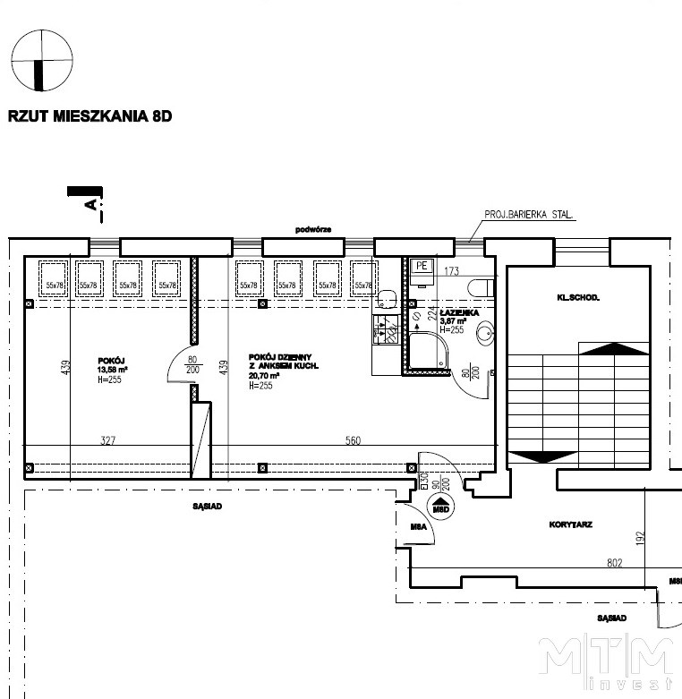 Mieszkanie o jednostronnej - południowej ekspozycji okien. Powierzchnia użytkowa wg. dokumentacji projektowej to 37,95 m2.