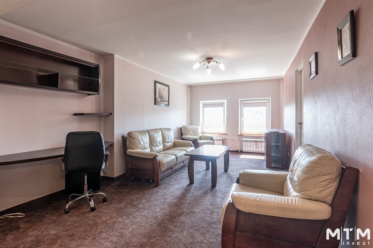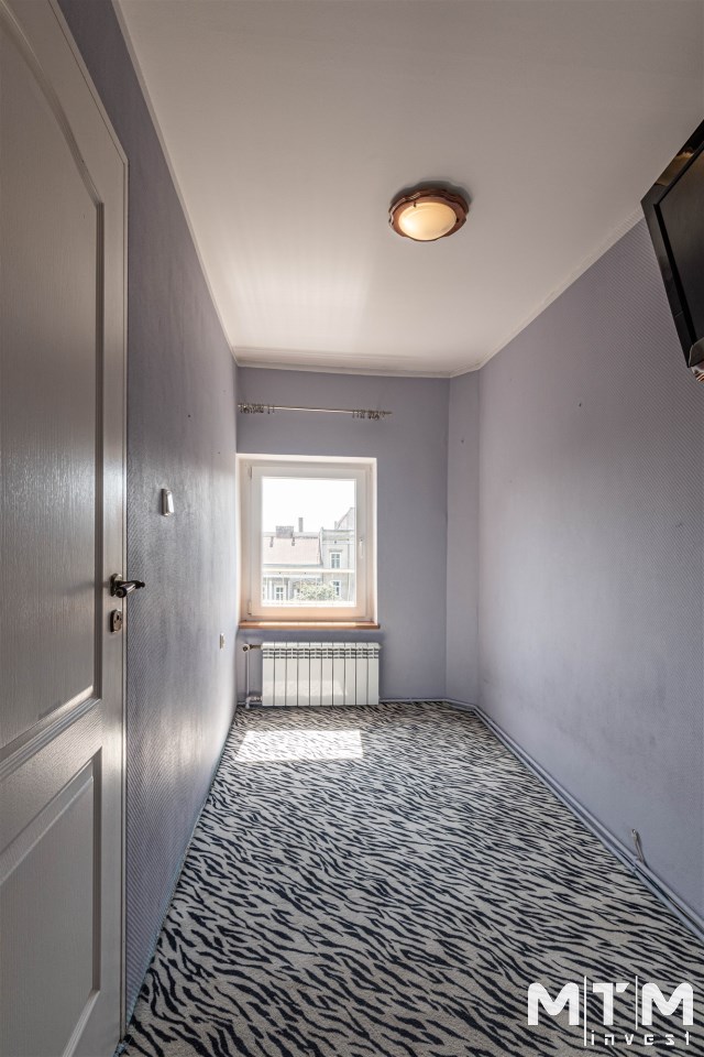 Mieszkanie powstałe z adaptacji poddasza - pokoje przechodnie. Ekspozycja okien południowa. Lokal składa się z pokoju dziennego, kuchni w formie aneksu, sypialni, garderoby, łazienki i przedpokoju .