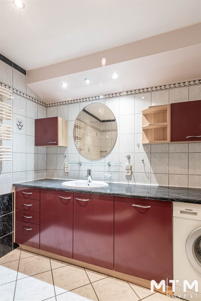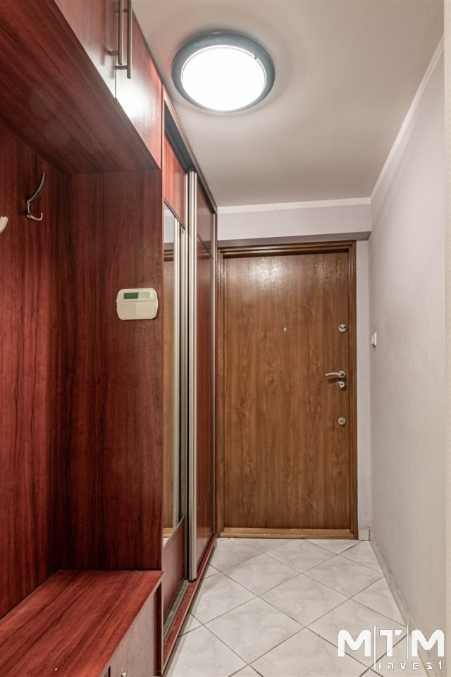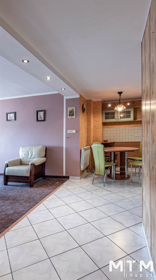 W pokojach wykładzina dywanowa, ściany tapetowane. W aneksie kuchennym, przedpokoju i części pokoju na podłodze terakota. Łazienka razem z wc w glazurze i terakocie, wanna. W przedpokoju duża zabudowa typu komandor.
