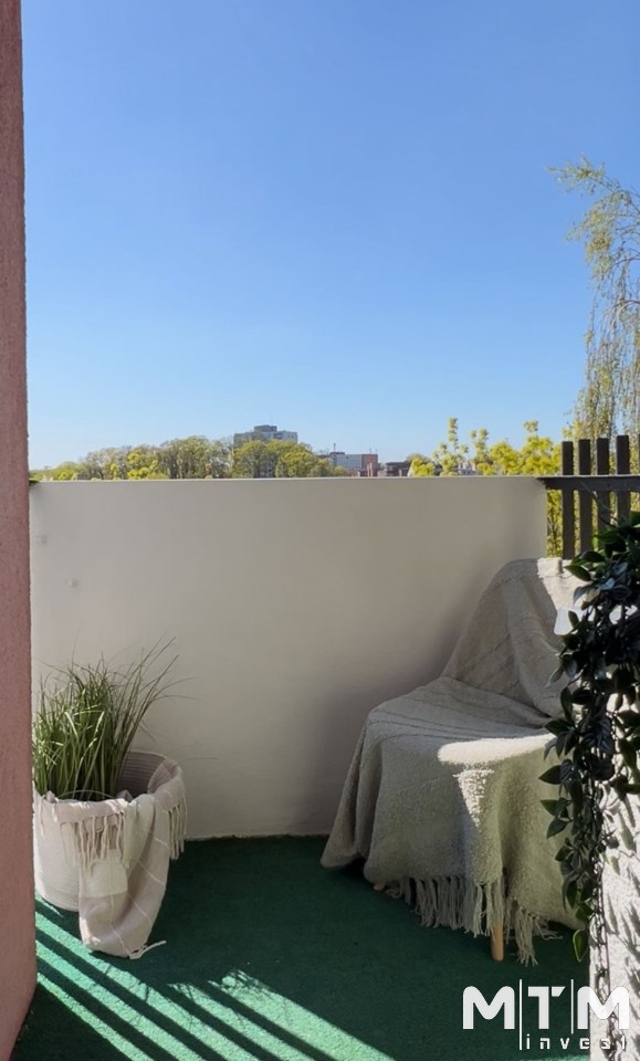 Salon jest jasny i przytulny, z wyjściem na balkon, który stanowi jeden z największych atutów mieszkania. Rozpościera się z niego widok na zieleń, bez bezpośredniego sąsiedztwa innych budynków, co daje poczucie prywatności, ciszy i spokoju – idealne miejsce na chwilę oddechu po dniu pracy.