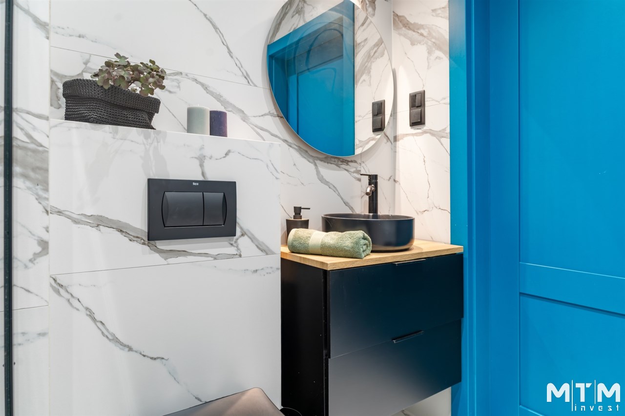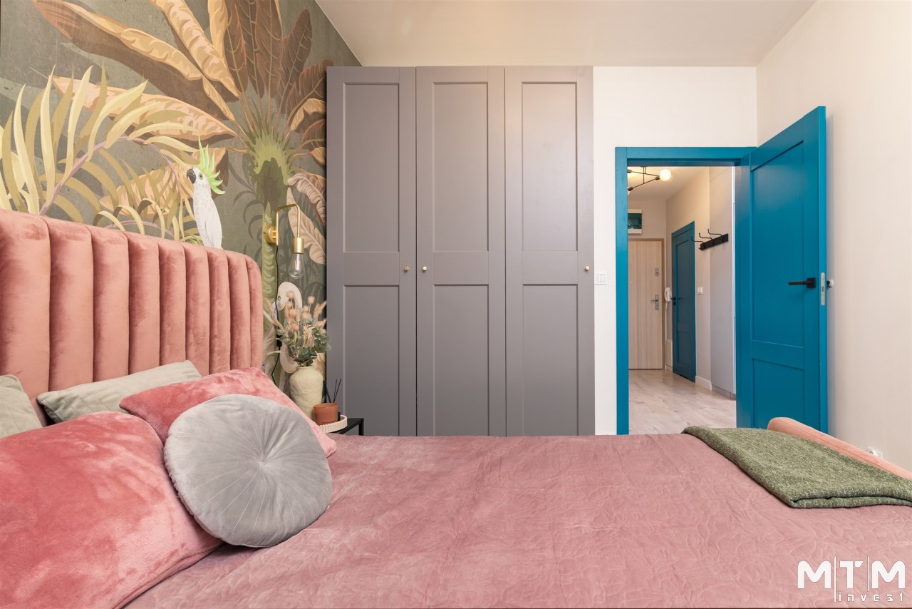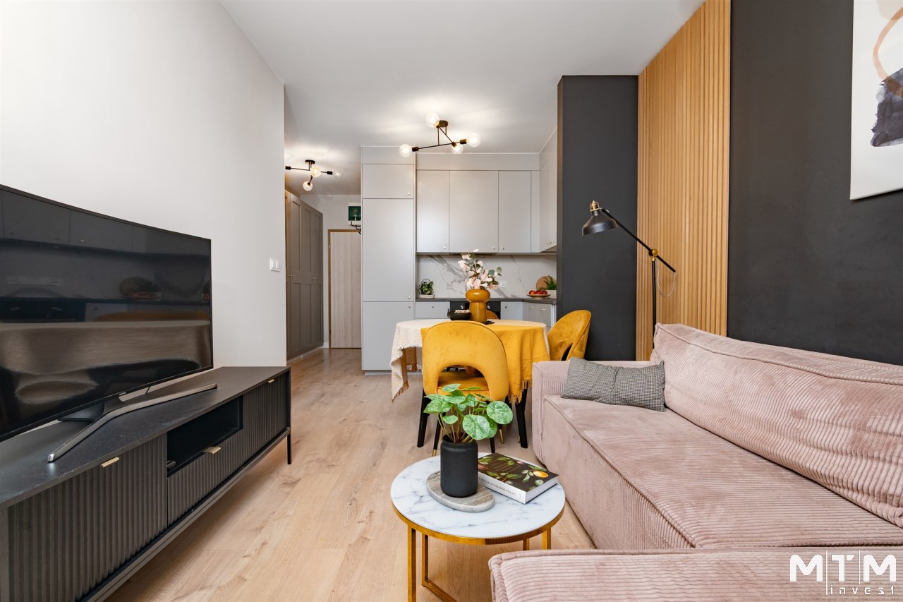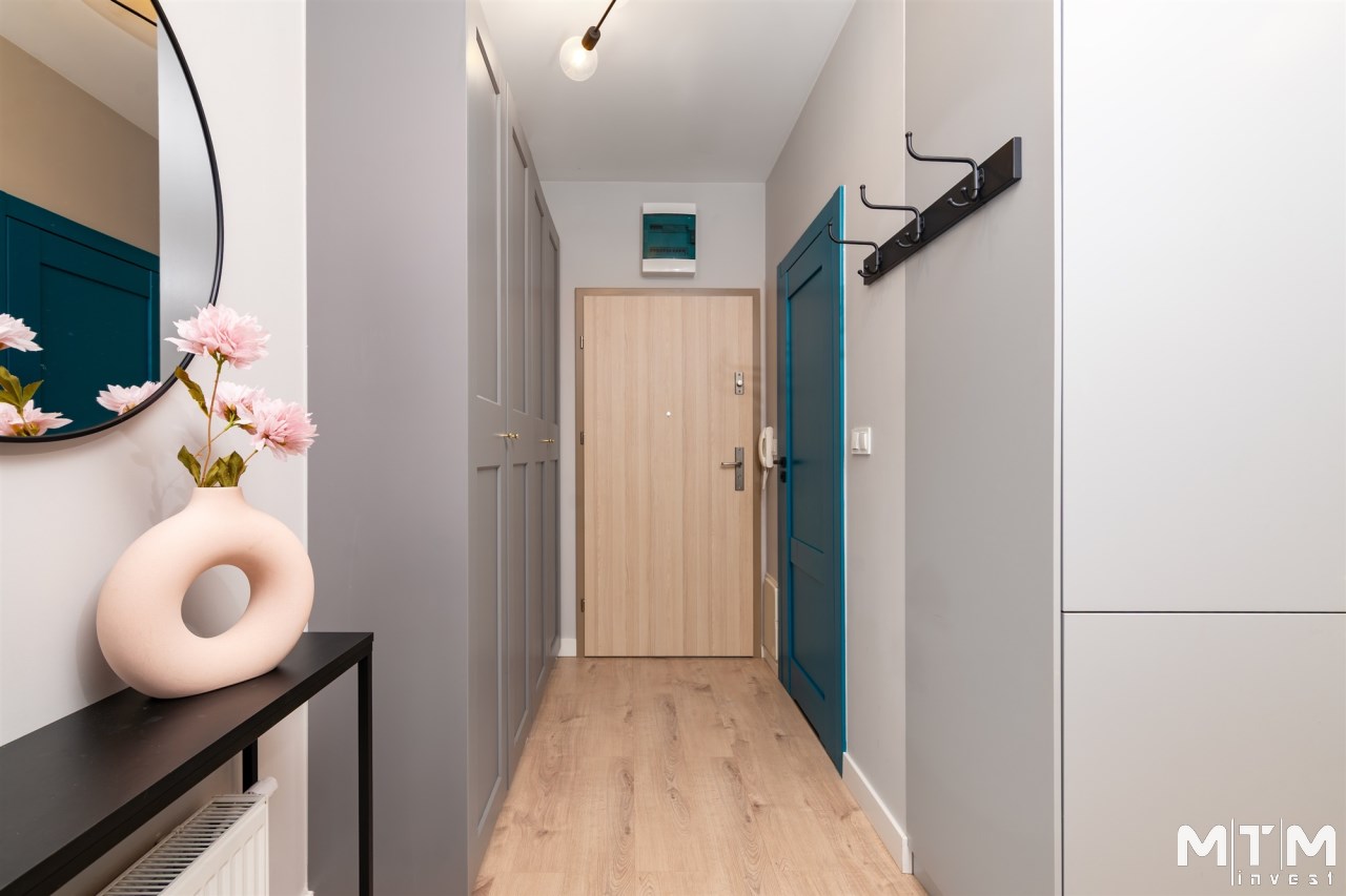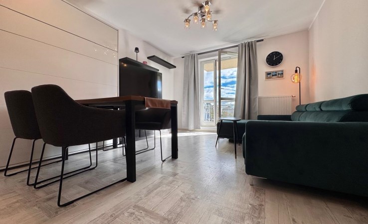 Wnętrze jest w pełni umeblowane i wyposażone w niezbędne sprzęty AGD i RTV, takie jak zmywarka, lodówka, piekarnik, płyta grzewcza, pochłaniacz, pralka oraz telewizor. Dzięki temu nowy właściciel może wprowadzić się od razu, zabierając jedynie osobiste rzeczy. Mieszkanie może również stanowić atrakcyjną opcję inwestycyjną, gotową do wynajmu bez dodatkowych nakładów.