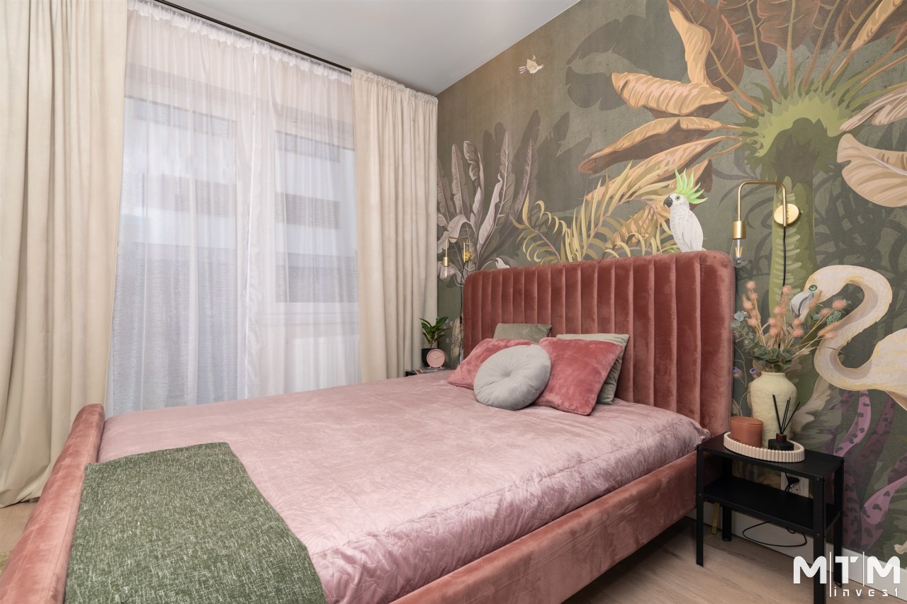 Mieszkanie składa się z pokoju dziennego z aneksem kuchennym, sypialni, przedpokoju oraz łazienki. Z obu pokoi można wyjść na przydomowy ogródek o powierzchni 20 m², który daje możliwość relaksu na świeżym powietrzu.