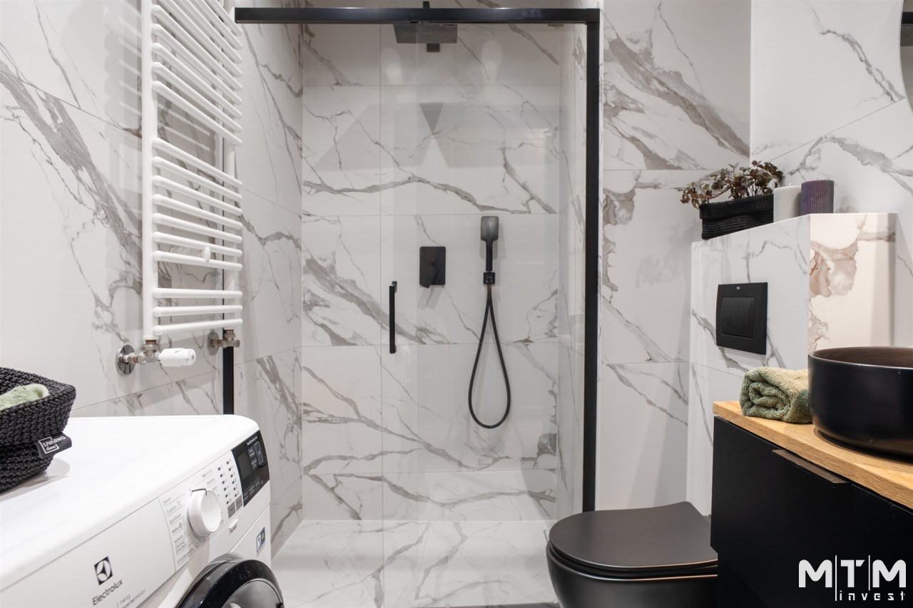 | Wyposażenie łazienki | lustro, kabina prysznicowa, pralka, umywalka, WC |