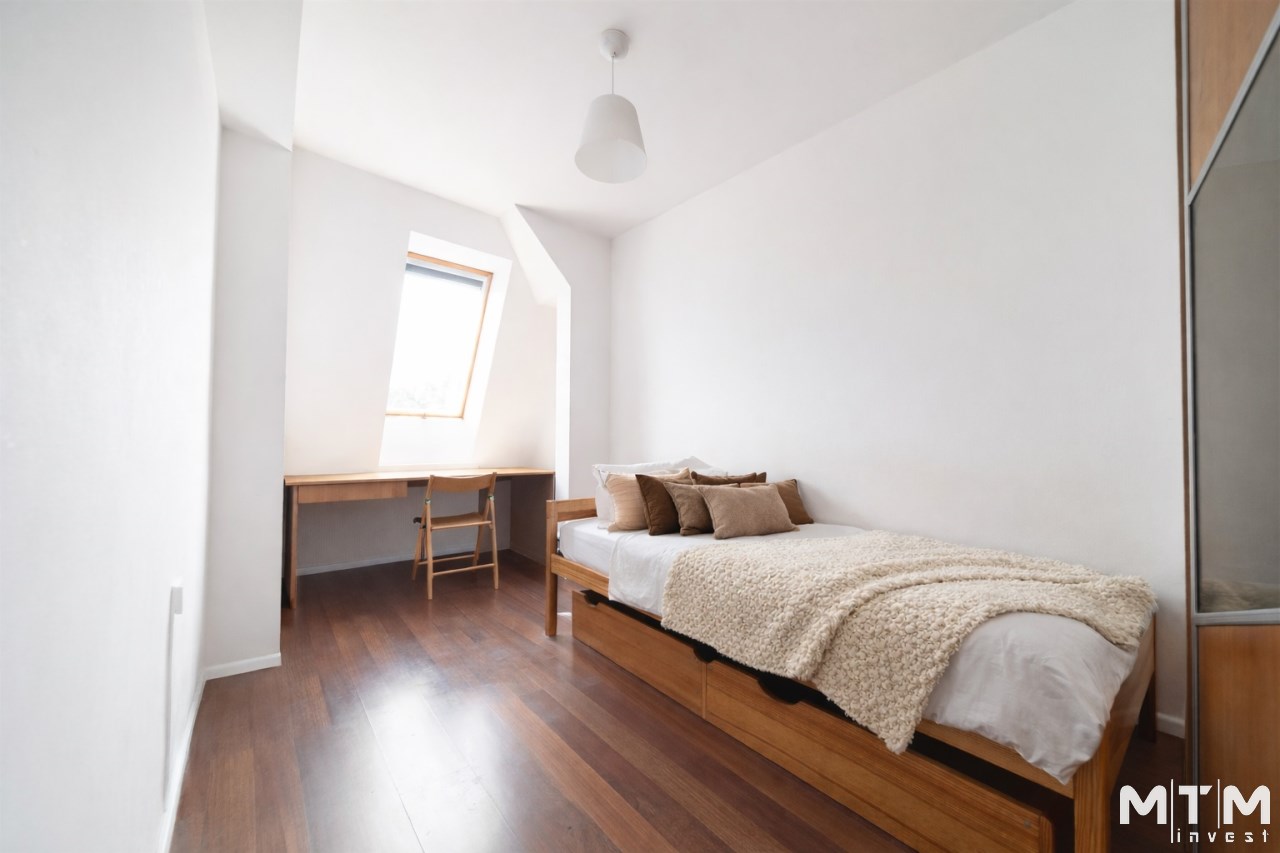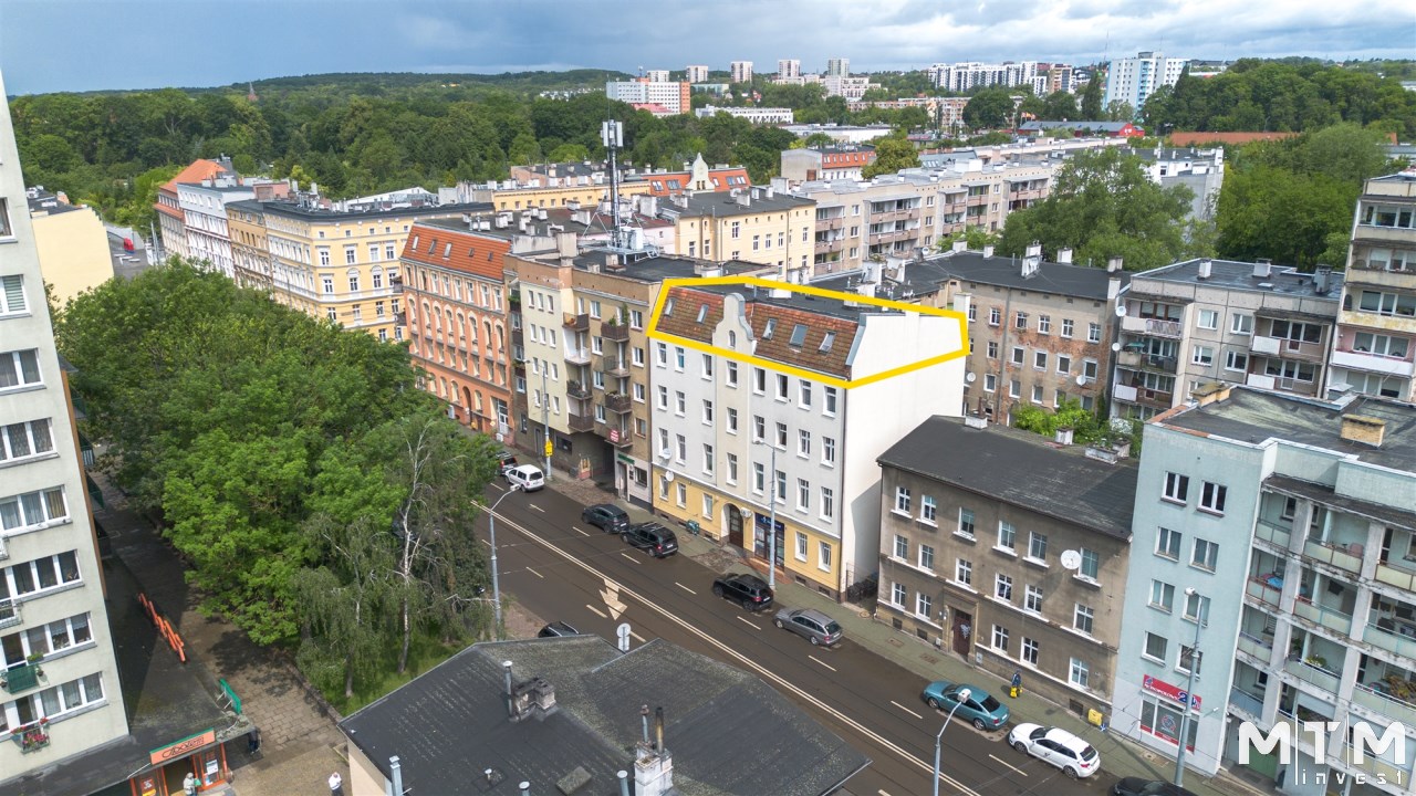Nieinwazyjne skosy, prawidłowo wykonana adaptacja poddasza w postaci izolacji dachu. W kamienicy wymieniony dach, piony wodno-kanalizacyjne.