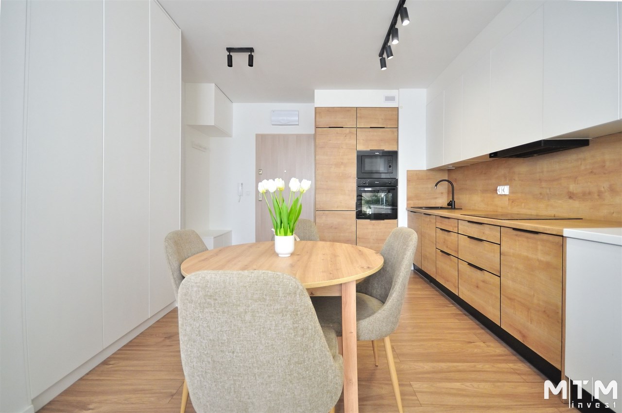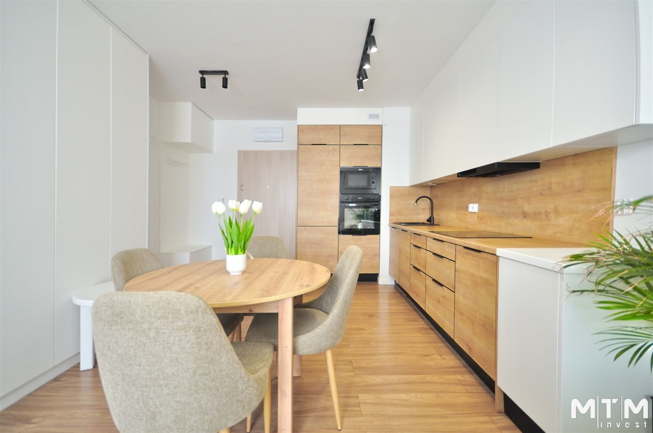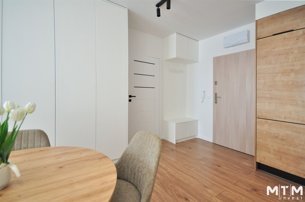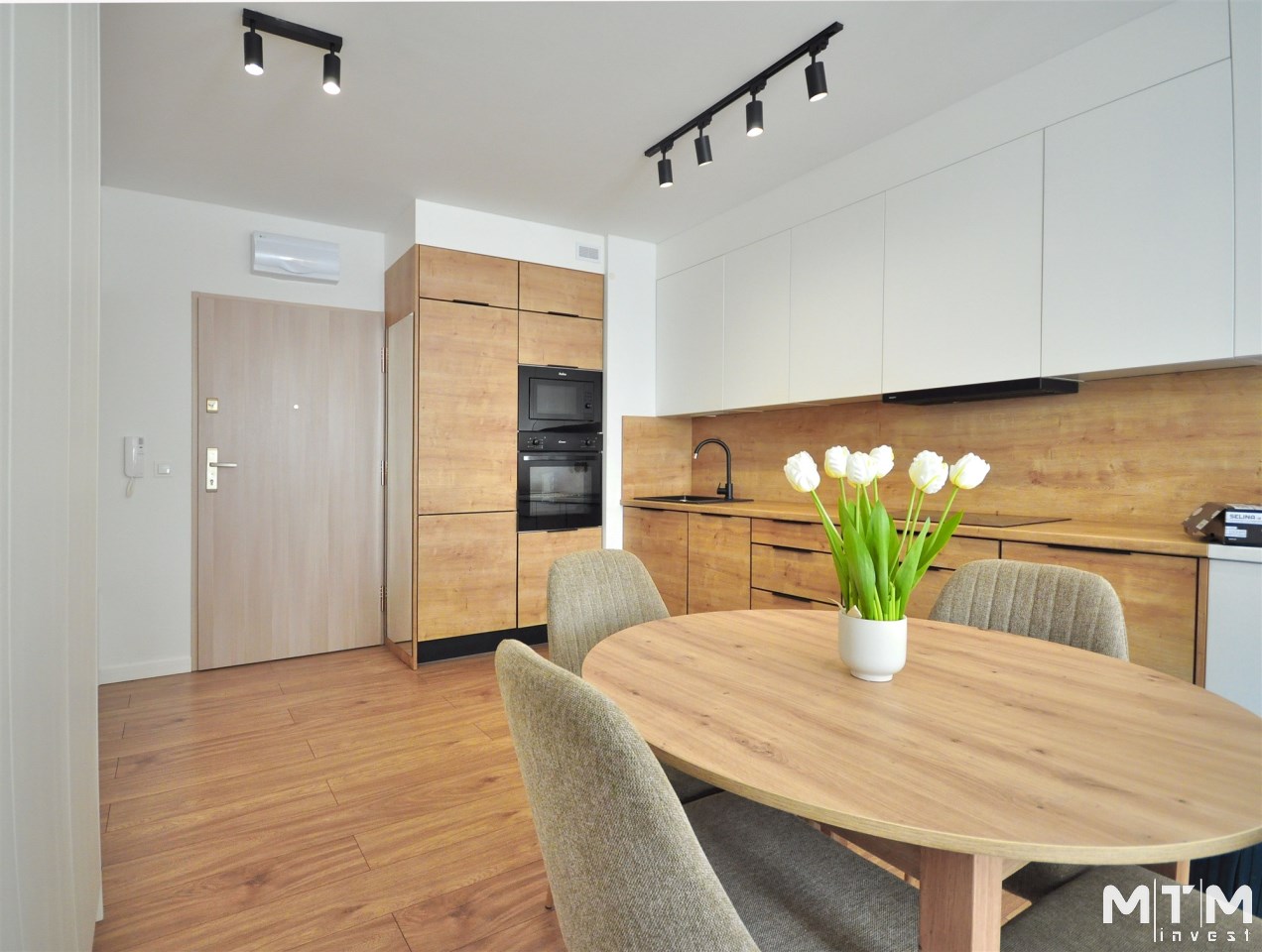 Salon dzienny z aneksem kuchennym, sypialnia osobno. Z obu pokoi wyjście na balkon.