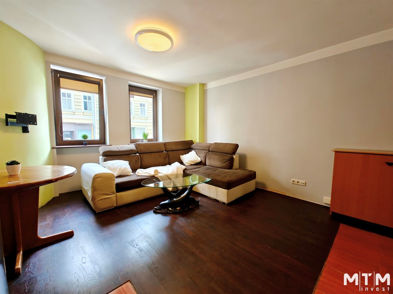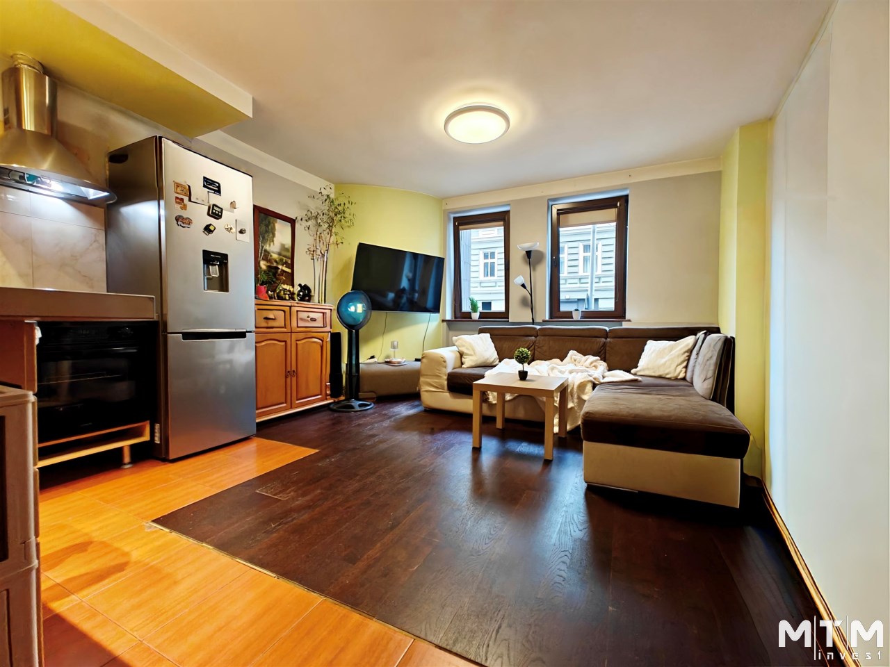 Lokal jest dwustronny (wschód–zachód) i został podzielony na dwa niezależne mieszkania: 2-pokojowe (ok. 40 m²) oraz studio (ok. 20 m²). Istnieje możliwość powrotu do układu pierwotnego lub wykonania osobnego wejścia – idealne rozwiązanie dla kancelarii, biura lub gabinetu. Bardzo łatwym sposobem można przewrócić do stanu pierwotnego (w zależności od zapotrzebowania kupującego).
