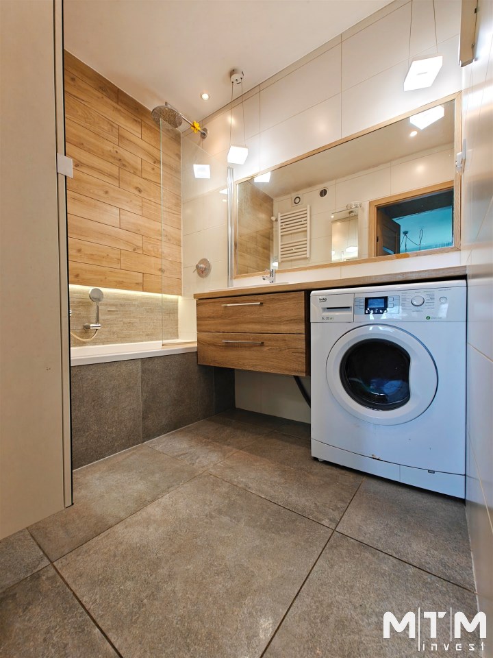 | Wyposażenie łazienki | lustro, natrysk, szafki, umywalka na szafce, wanna, WC |