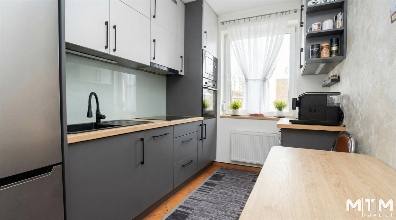 - oddzielna, nowoczesna kuchnia z zabudową i sprzętem AGD (płyta indukcyjna)