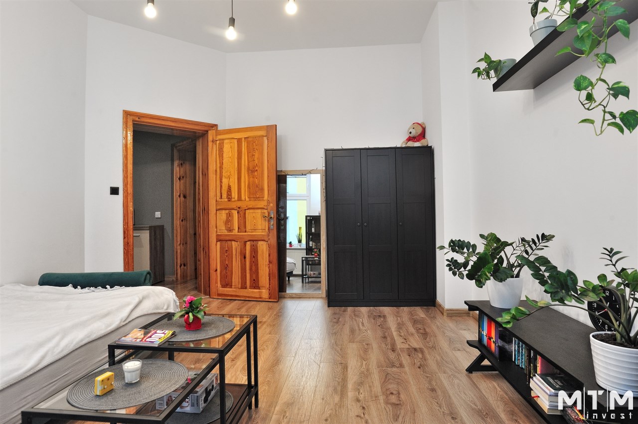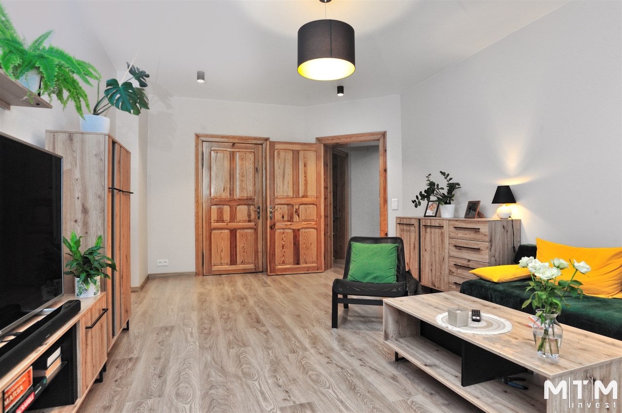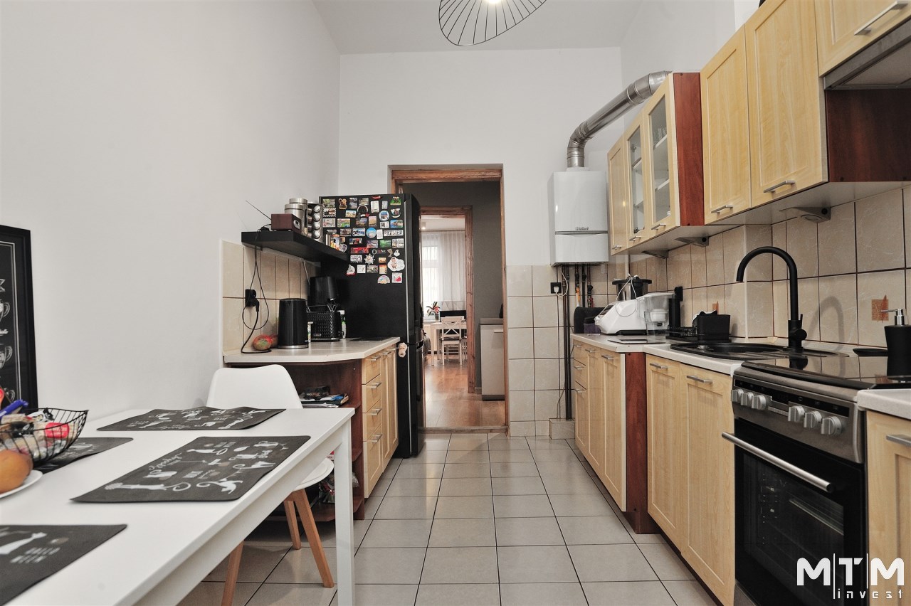 - przestronny salon z balkonem, przedpokój, 2 duże pokoje, kuchnia, łazienka, mały pokój ( służbówka).