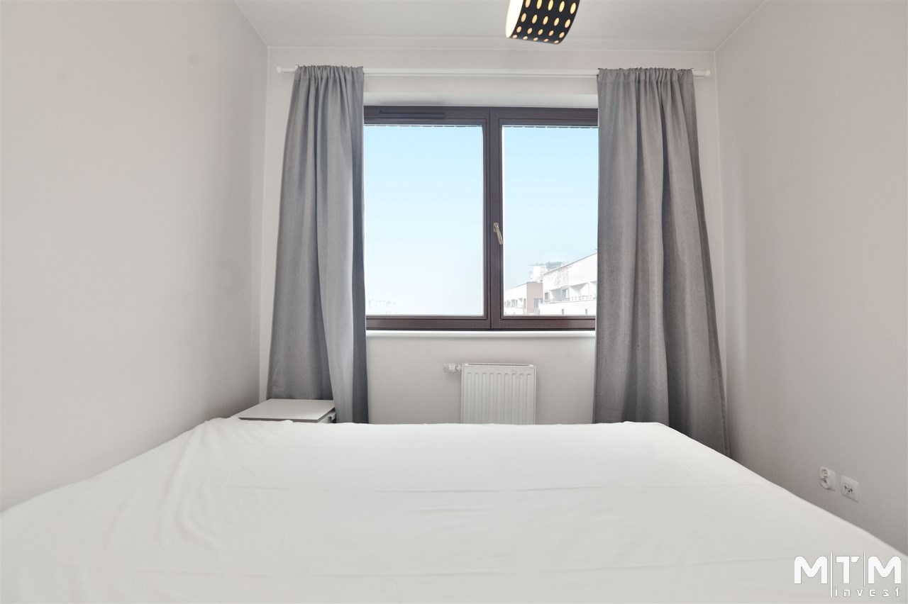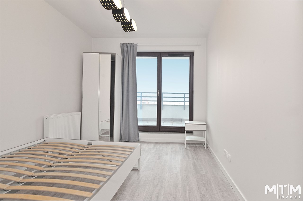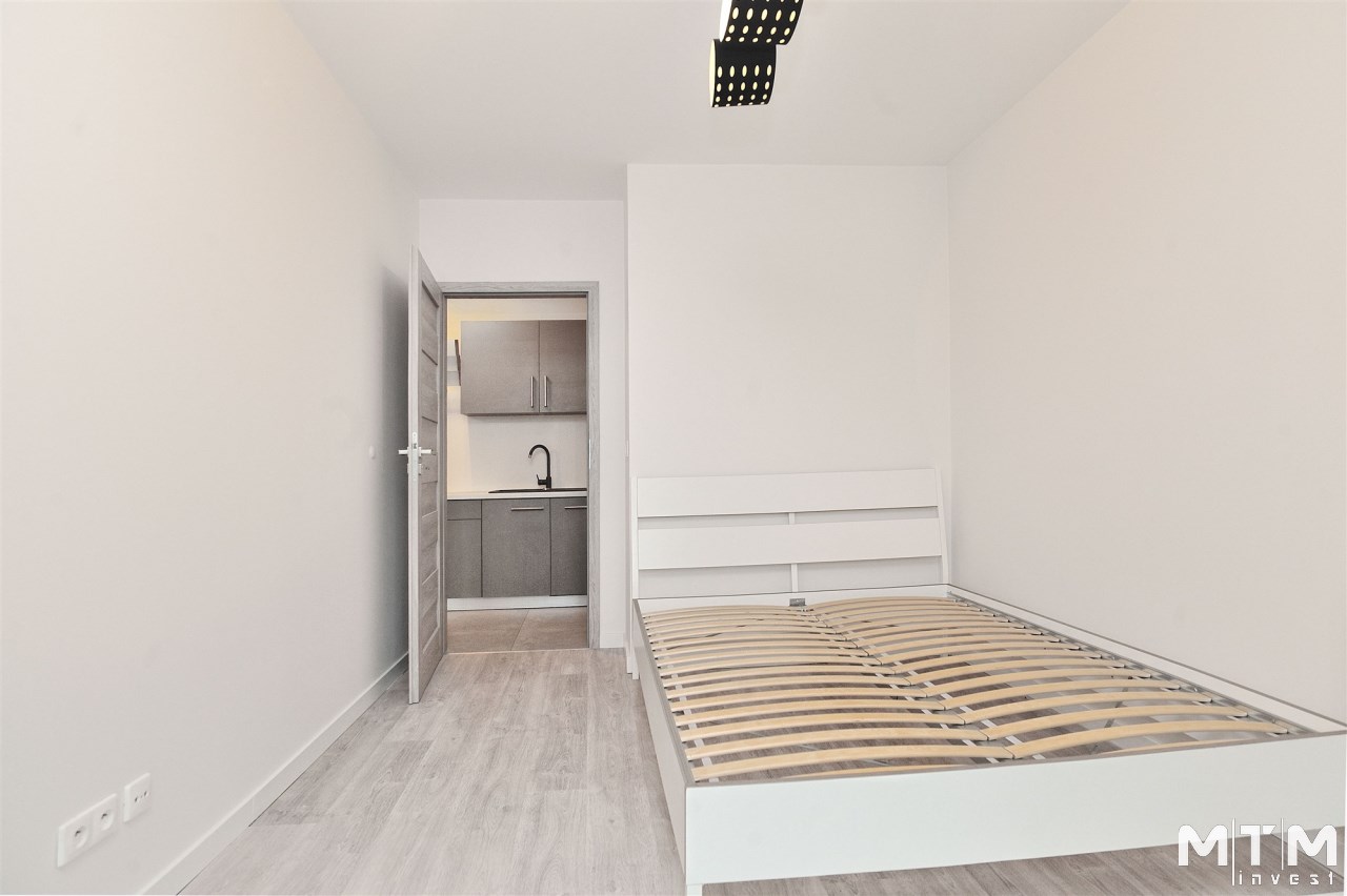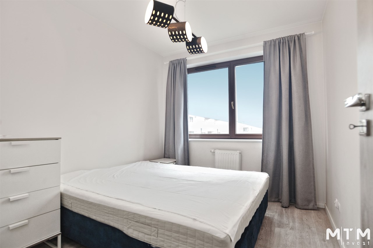 Dwie sypialnie z bezpośrednim wyjściem na duży taras – idealne miejsce do relaksu. Dodatkowo łazienka z kabiną prysznicową oraz praktyczny aneks kuchenny w korytarzu.