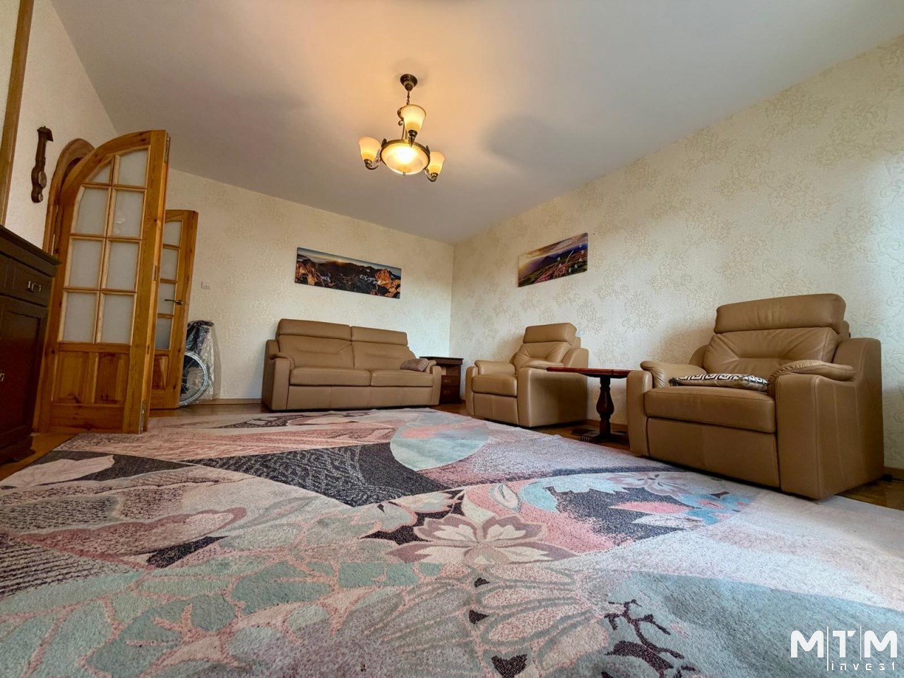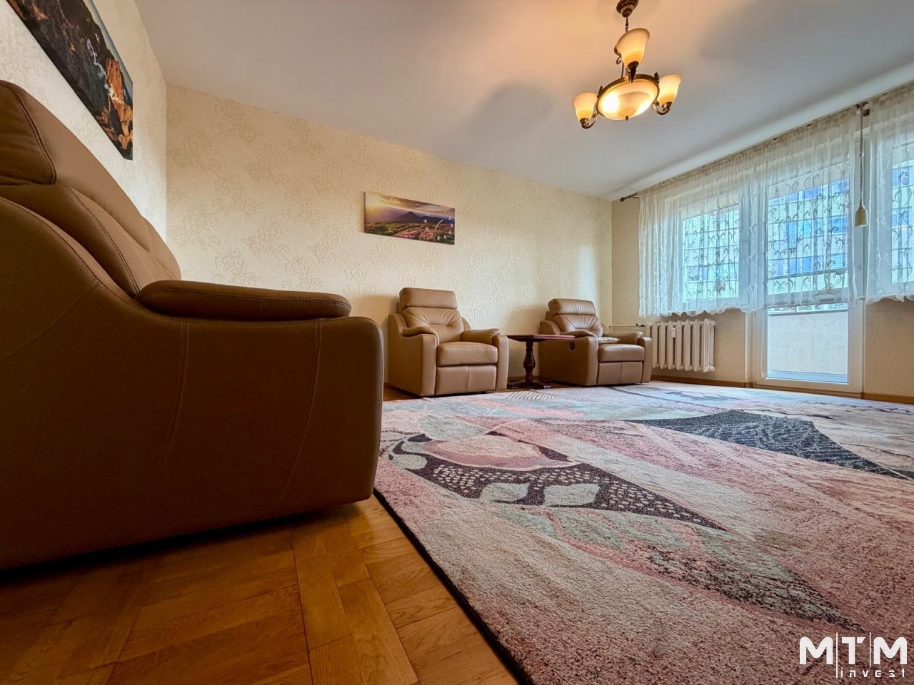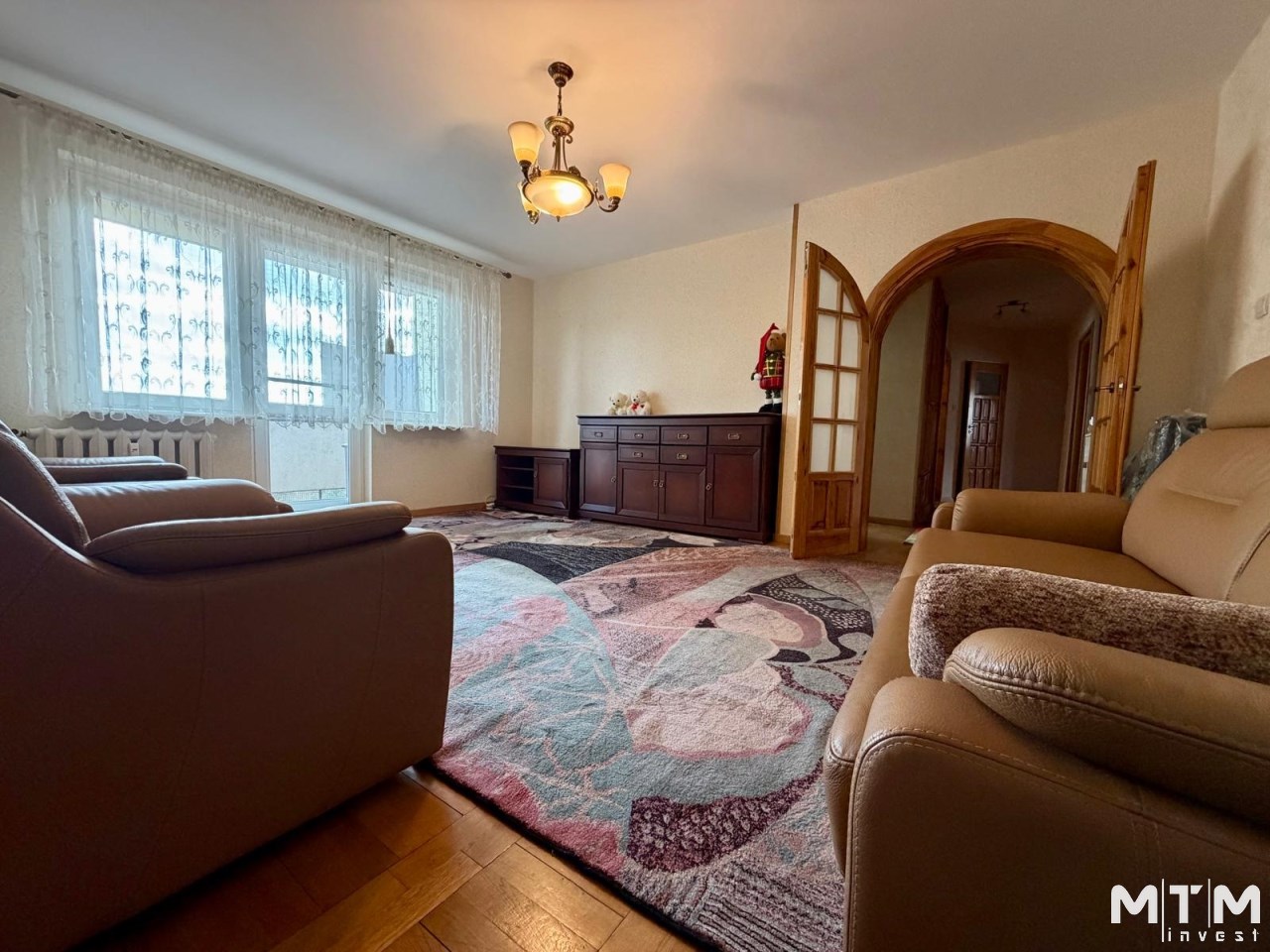 przestronny salon z wyjściem na balkon,