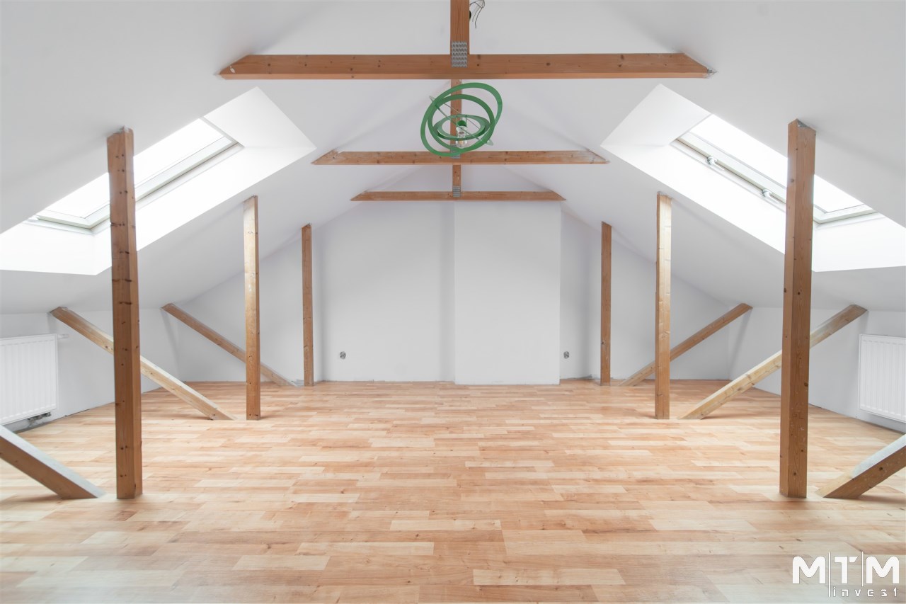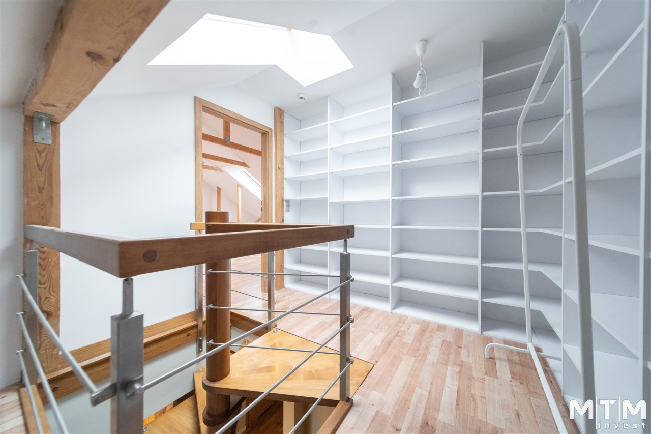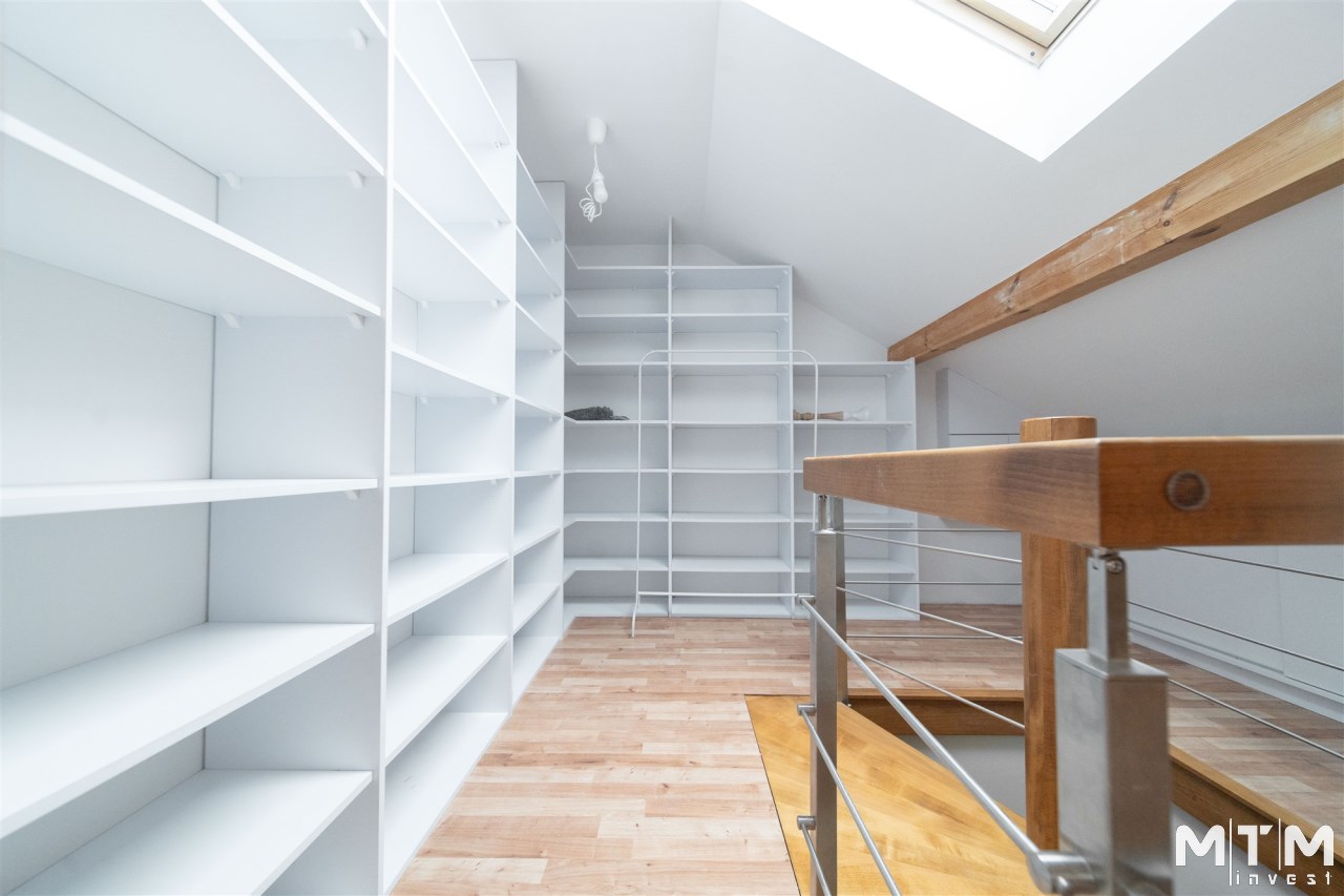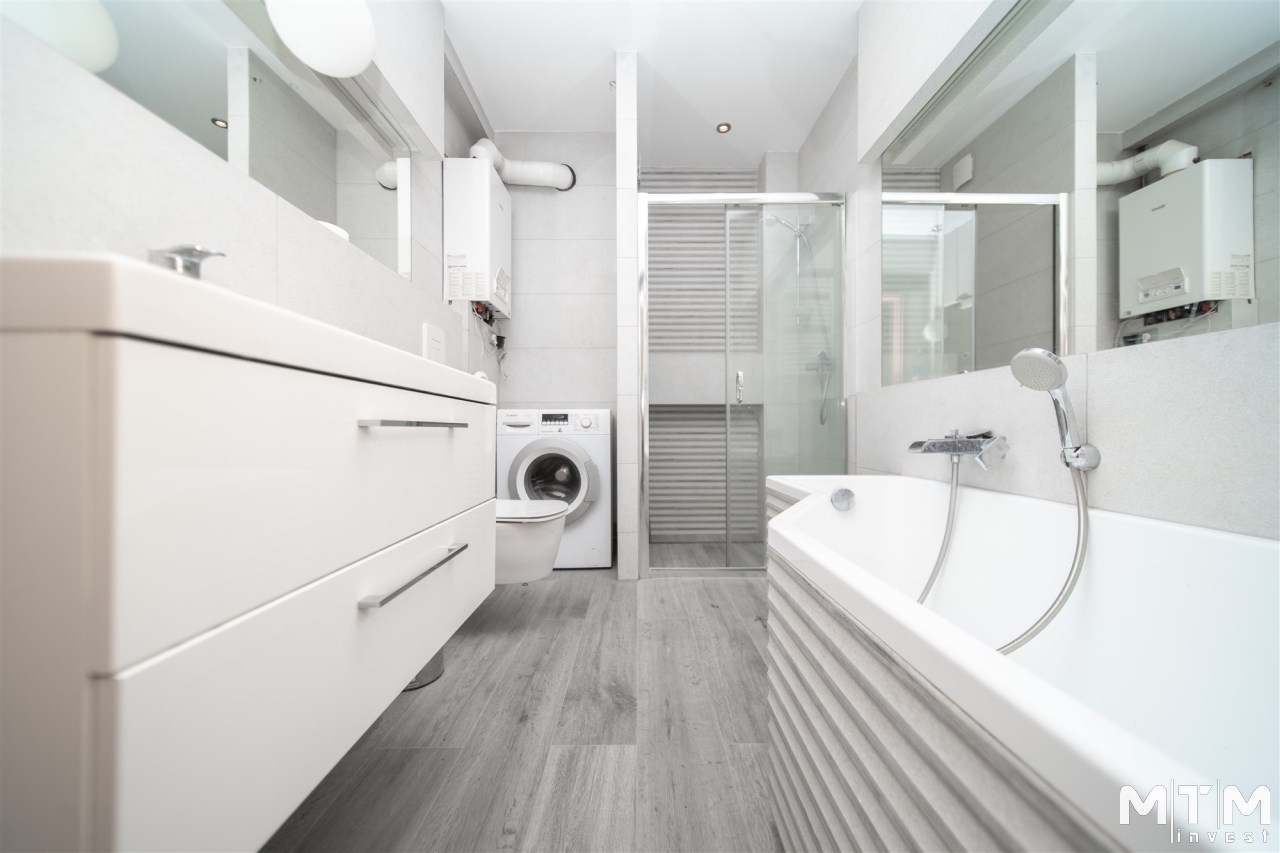 Mieszkanie wykończone w wysokim standardzie, z dbałością o detale i funkcjonalność. Dębowa podłoga oraz schody, nowoczesne oświetlenie, kuchnia wykonana na zamówienie, instalacja alarmowa. Zabudowy stałe – w przedpokoju oraz sypialni głównej – również robione na wymiar.
