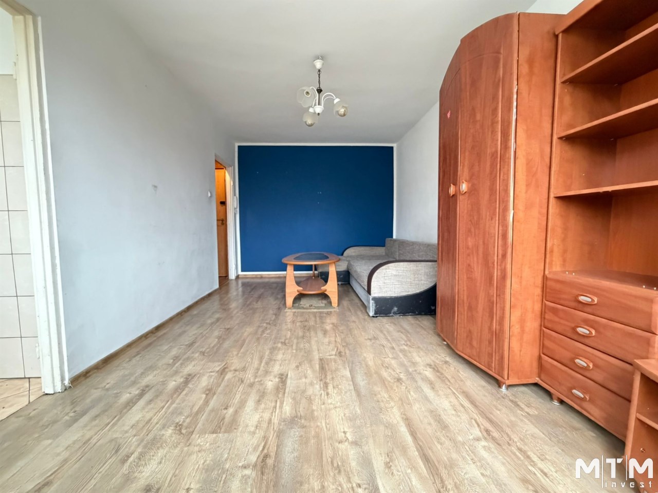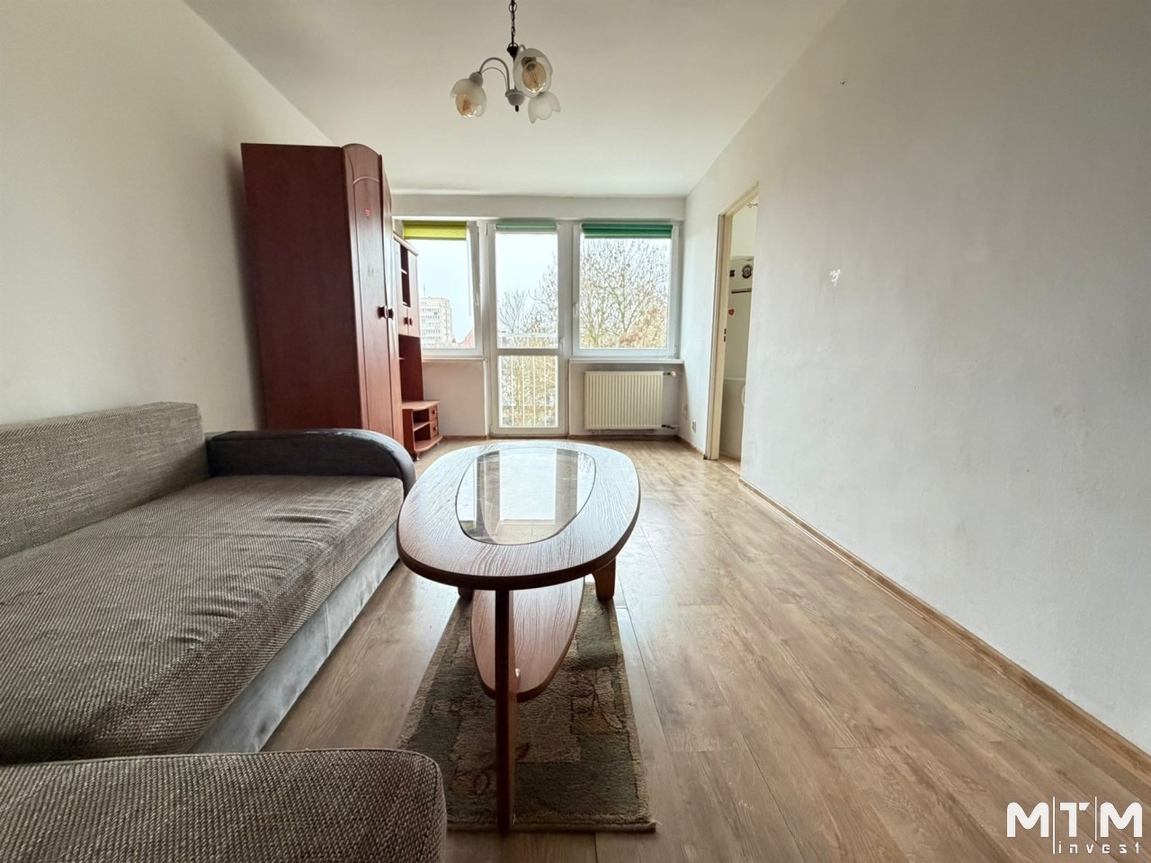 Lokal składa się z ustawnego pokoju dziennego, osobnej kuchni, łazienki oraz przedpokoju. Układ mieszkania zapewnia komfortowe warunki do codziennego użytkowania.