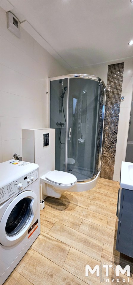 Wyposażenie łazienki | lustro, pralka, prysznic, WC |