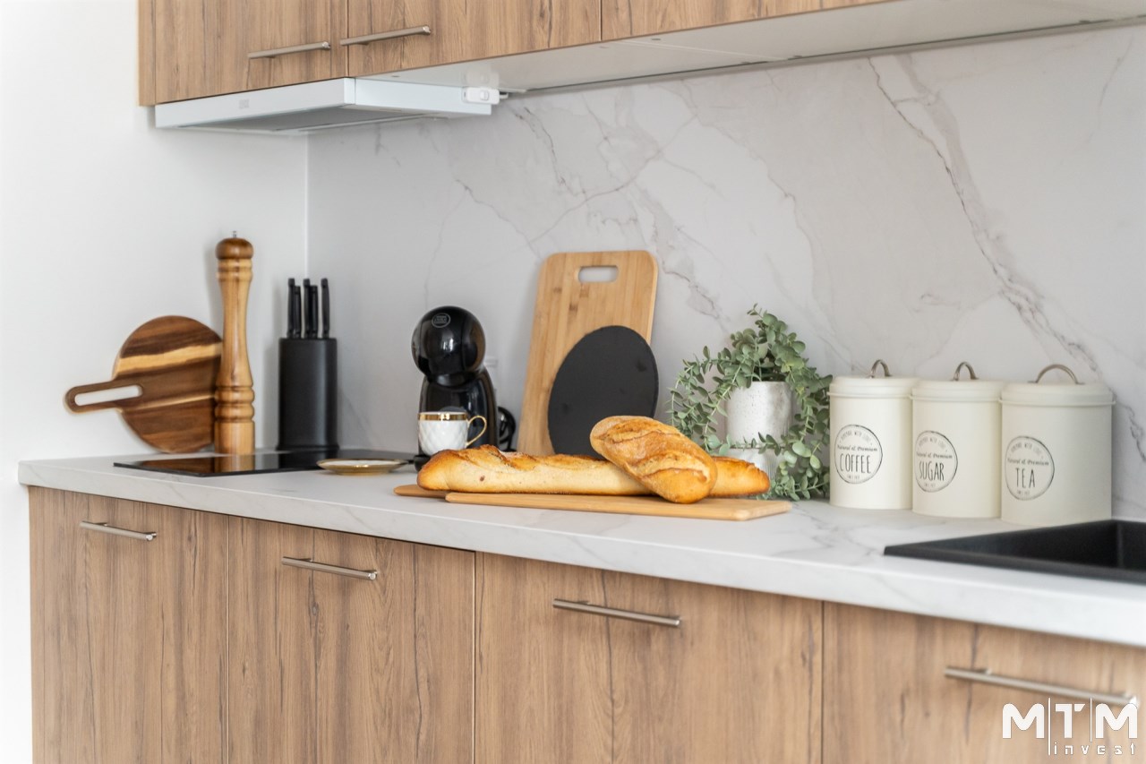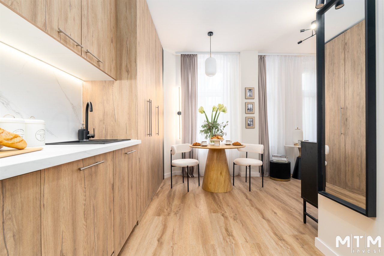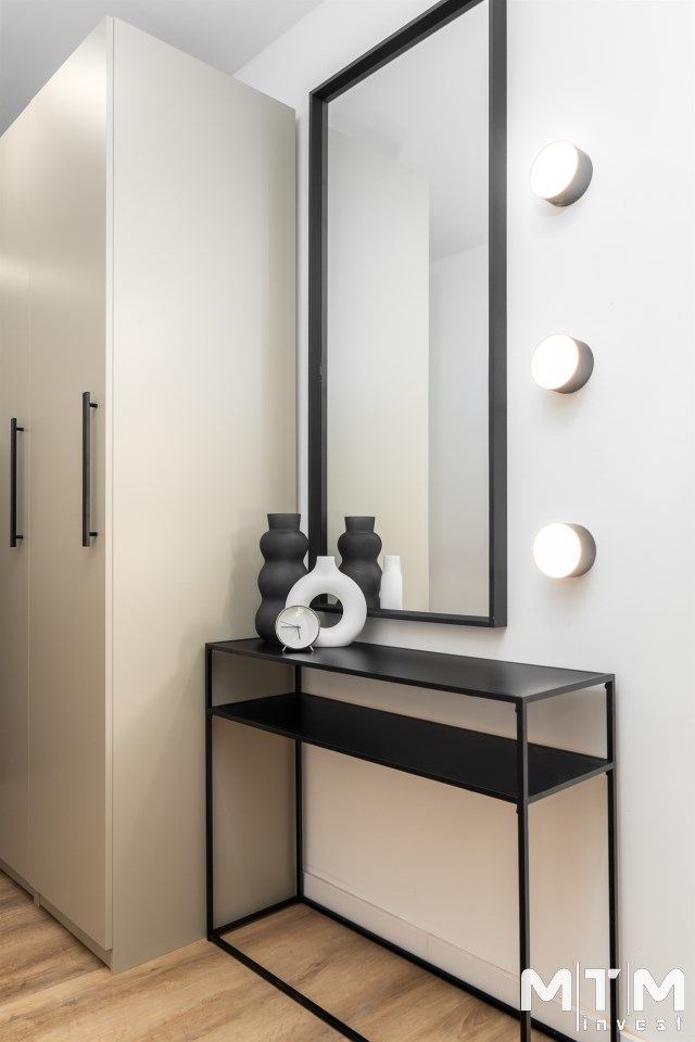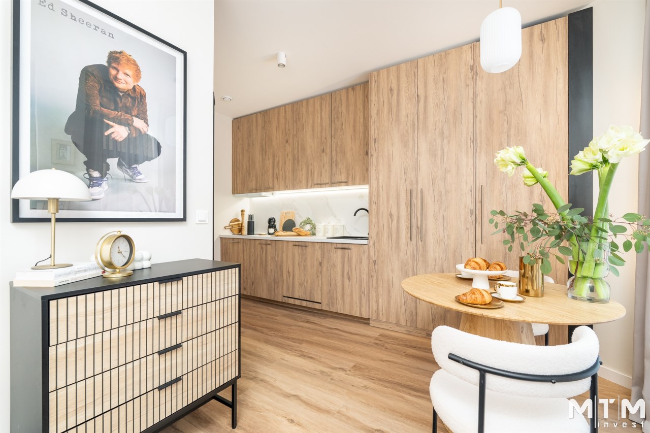 Mieszkanie po remoncie kapitalnym, o wschodniej ekspozycji okien. Pokój dzienny z aneksem kuchennym, łazienka i korytarz. W pokoju i korytarzu na podłodze panele, ściany wygładzone, malowane. W pokoju wypoczynek, stół, dwa krzesła, komoda oraz szafa ubraniowa. Łazienka w glazurze i terakocie, kabina prysznicowa, muszla podwieszana typu geberit, umywalka, meble łazienkowe, lustro, pralka. Kuchnia kompletnie umeblowana i wyposażona: lodówka podblatowa, płyta elektryczna, okap, zmywarka, mikrofala.