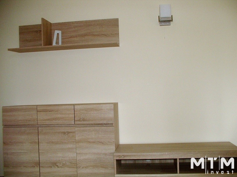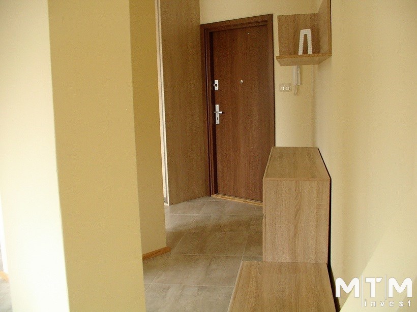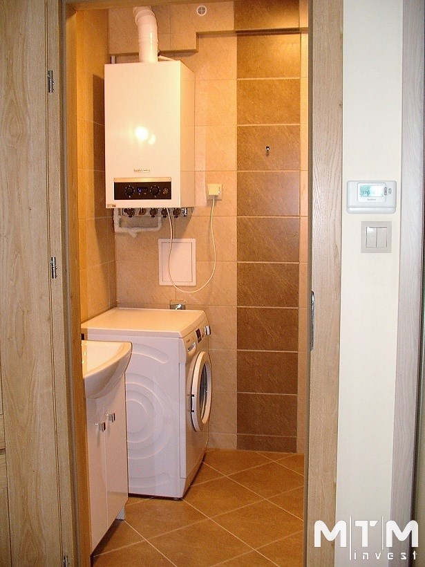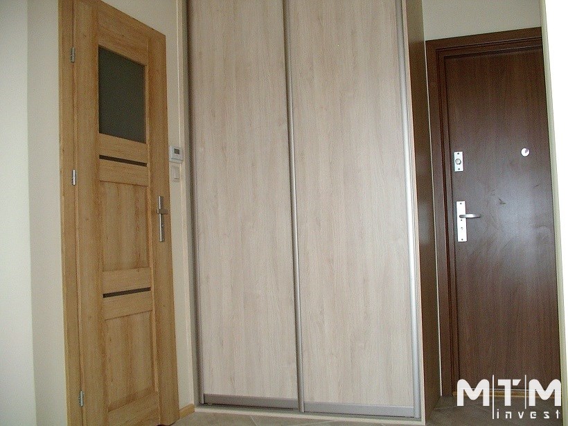 Łazienka z kabiną natryskową sedesem, umywalką, pralką. Kuchnia wyposażona w zabudowę na wymiar i sprzęt AGD w zabudowie. W pokoju kanapa rozkładana i szafki. W przedpokoju szafa w zabudowie. Drzwi antywłamaniowe, ogrzewanie gazowe z pieca dwuobiegowego. Podłogi są w całym mieszkaniu z terakoty.
