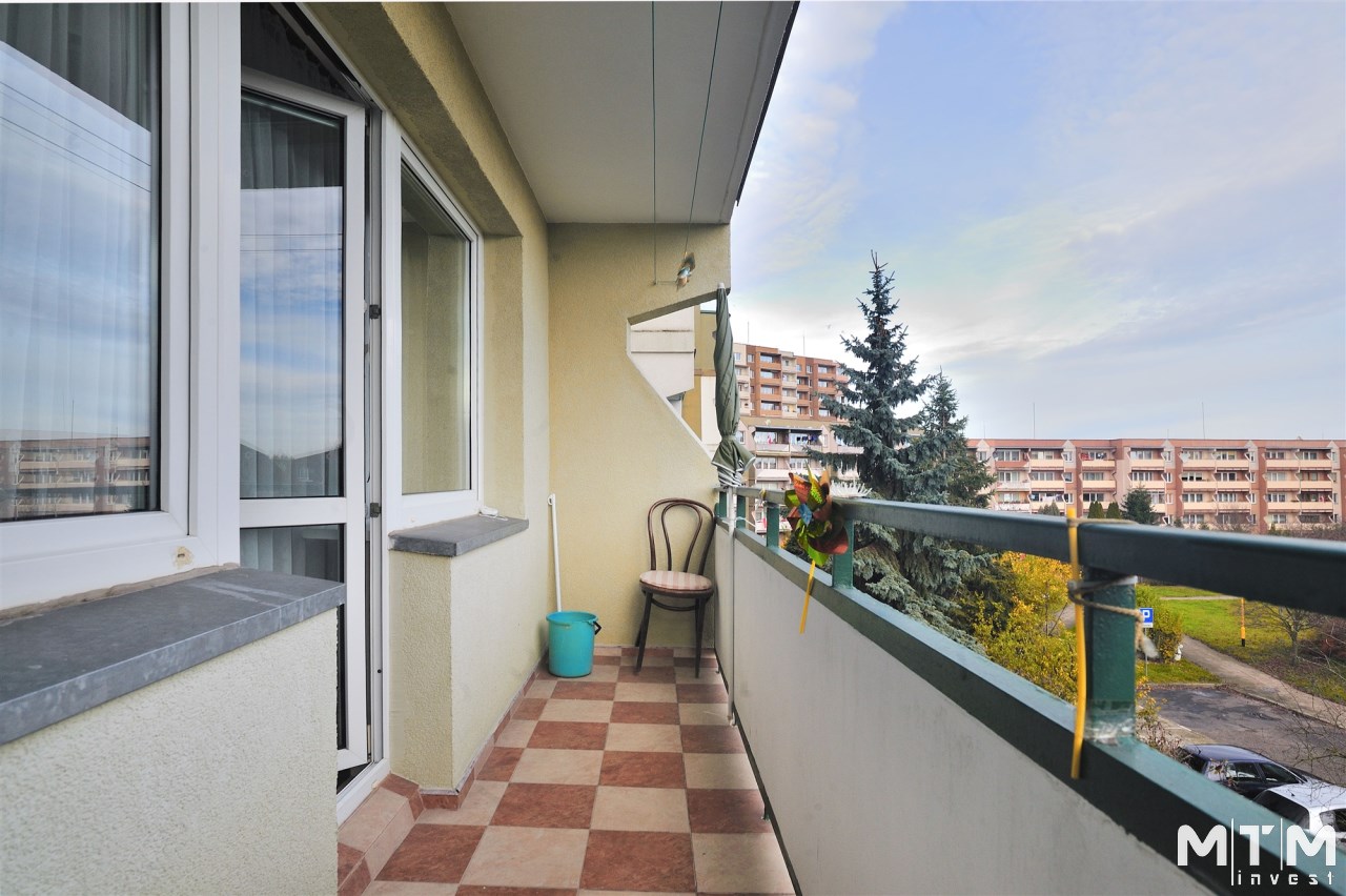 Pokój dzienny z balkonem, w holu szafa, sypialnia od strony południowej.