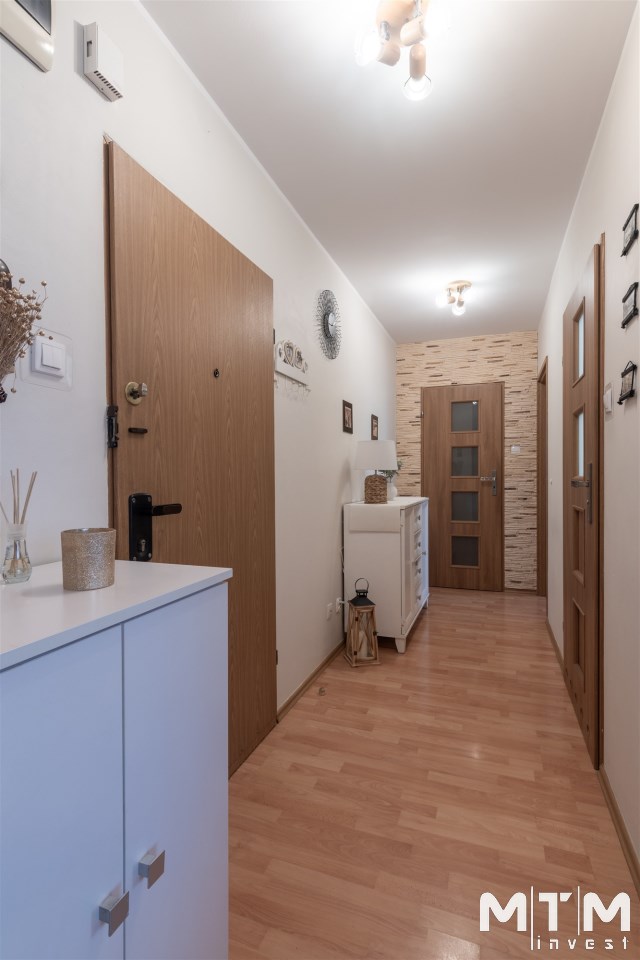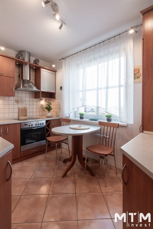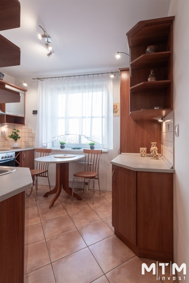 Mieszkanie położone na trzecim piętrze budynku, o północno zachodniej ekspozycji okien. Z balkonu rozpościera się piękny widok na zachodnią część miasta. Mieszkanie w bardzo dobrym standardzie, na podłodze panele, ściany gładzone, malowane. W łazience, z wanną i wc, ładna, jasna glazura i terakota. Pokoje w całości umeblowane i wyposażone. Kuchnia umeblowana i wyposażona w sprzęt AGD - płyta elektryczna, piekarnik elektryczny, lodówka, okap, kuchenka mikrofalowa. W łazience znajduje się pralka. Dodatkowo w mieszkaniu znajduje się duża garderoba. Ogrzewanie i ciepła woda z SEC - osobna umowa.