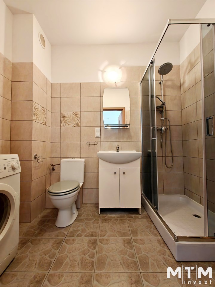 | Wyposażenie łazienki | kabina prysznicowa, lustro, pralka, umywalka na szafce, WC |