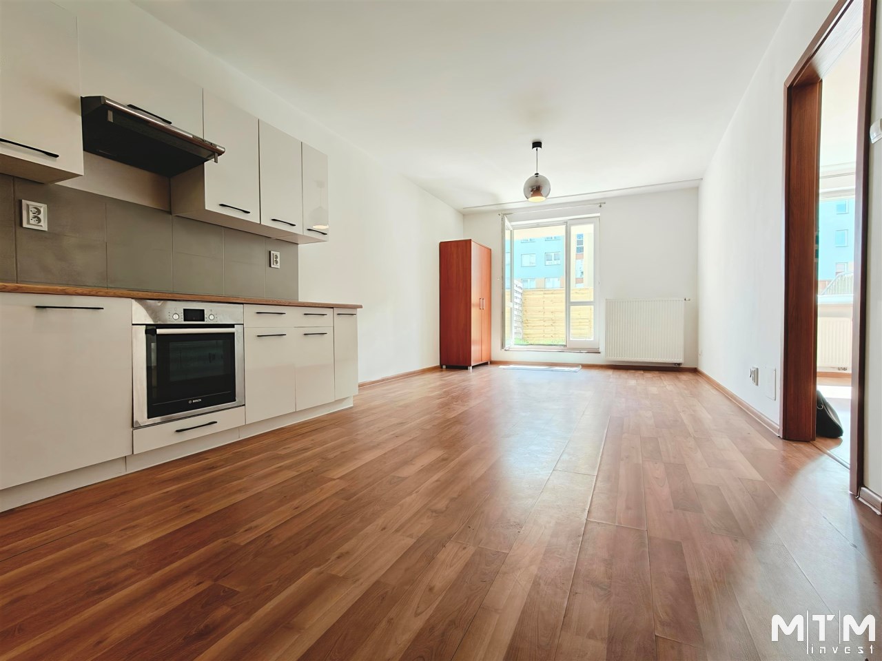 Przestronny salon z aneksem kuchennym z bezpośrenim wyjściem na prywatny ogródek ok. 30 m²;