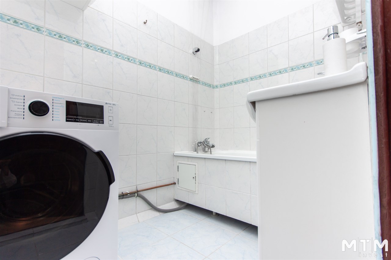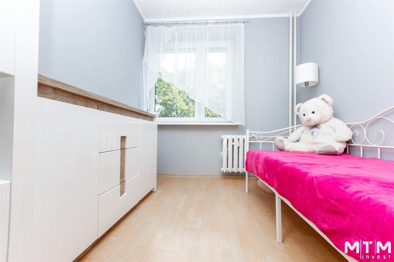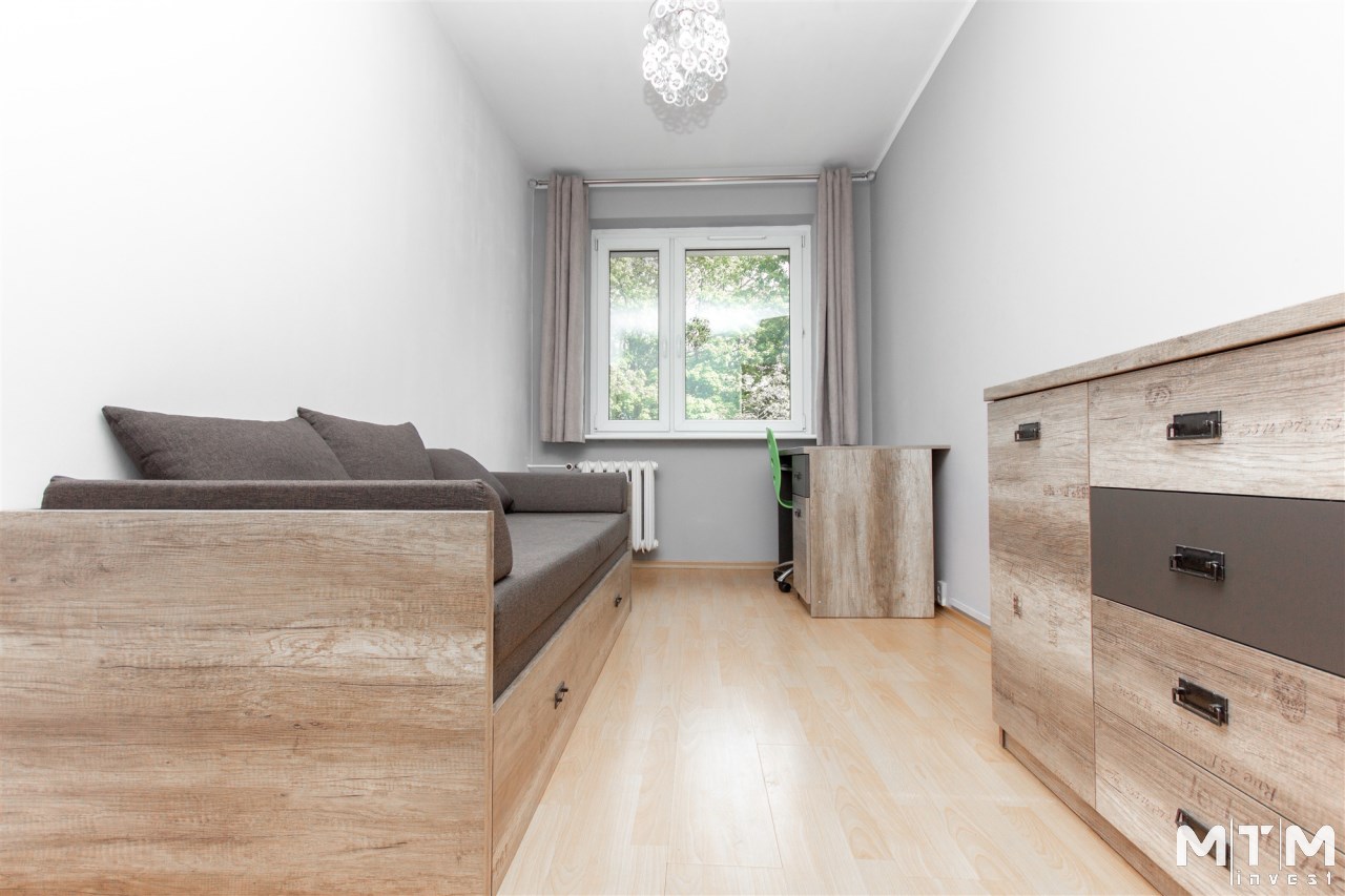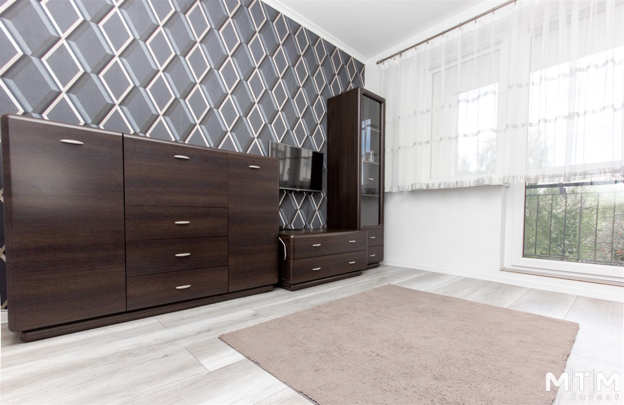 W mieszkaniu znajduje się łazienka z pralką oraz wanną, a także osobna toaleta. Do dyspozycji są również dwie duże szafy w zabudowie – jedna w holu, druga w przedpokoju – zapewniające dużo miejsca do przechowywania. Dodatkowym atutem jest przestronny balkon z widokiem na drzewa, który daje poczucie prywatności i spokoju.